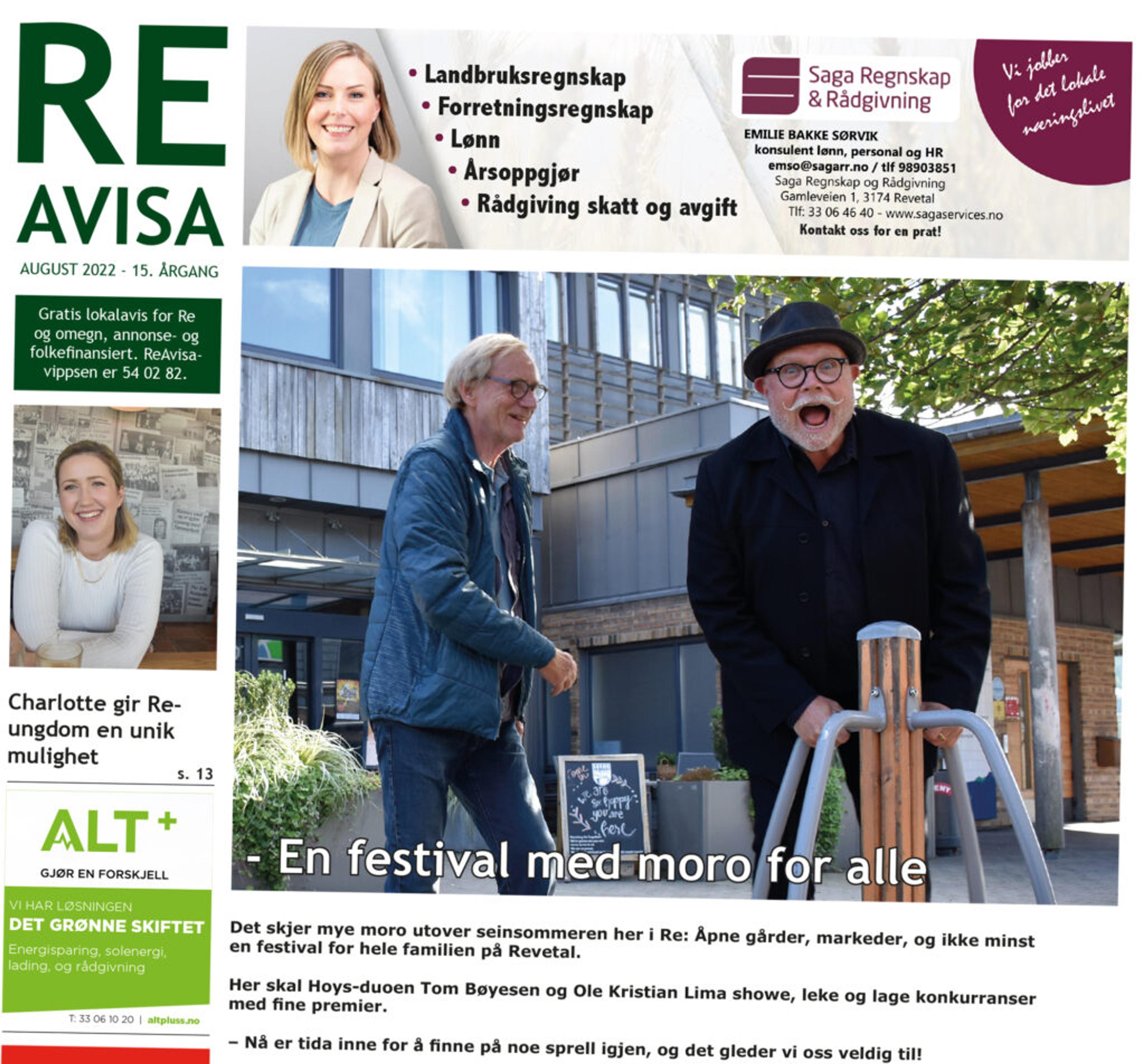 Papiravisa ligger i postkassene, der folk møtes, ogtil gratis nedlastning her på nettavisa– som vanlig. ReAvisa er annonse- og folkefinansiert, vil du være med på spleiselaget så er ReAvisa-vippsen 54 02 82.
