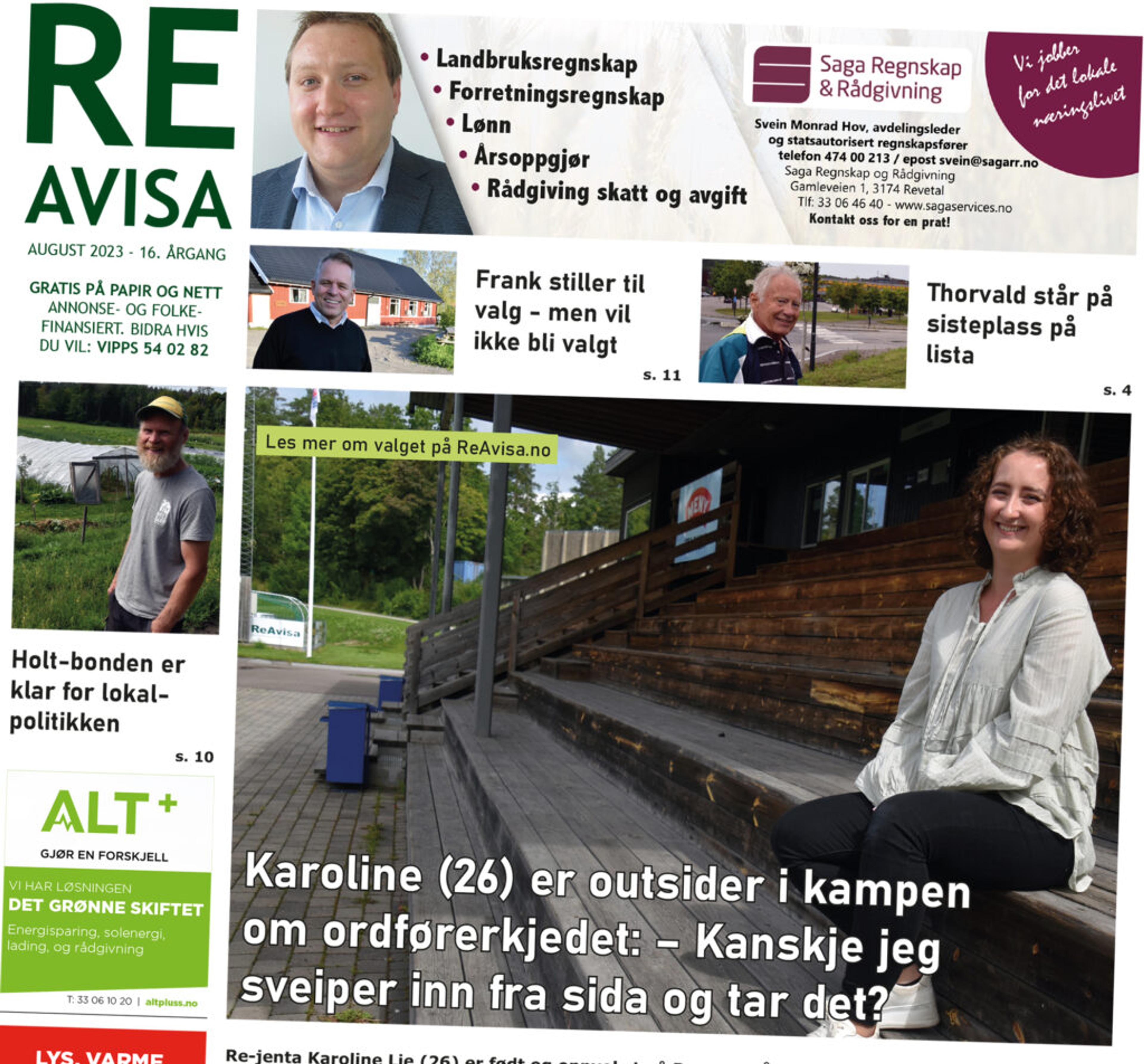 GODT LOKALT LESESTOFF: Ei rykende fersk avis ligger i avishyllene i dag, torsdag 17. august 2023. Faksimile.