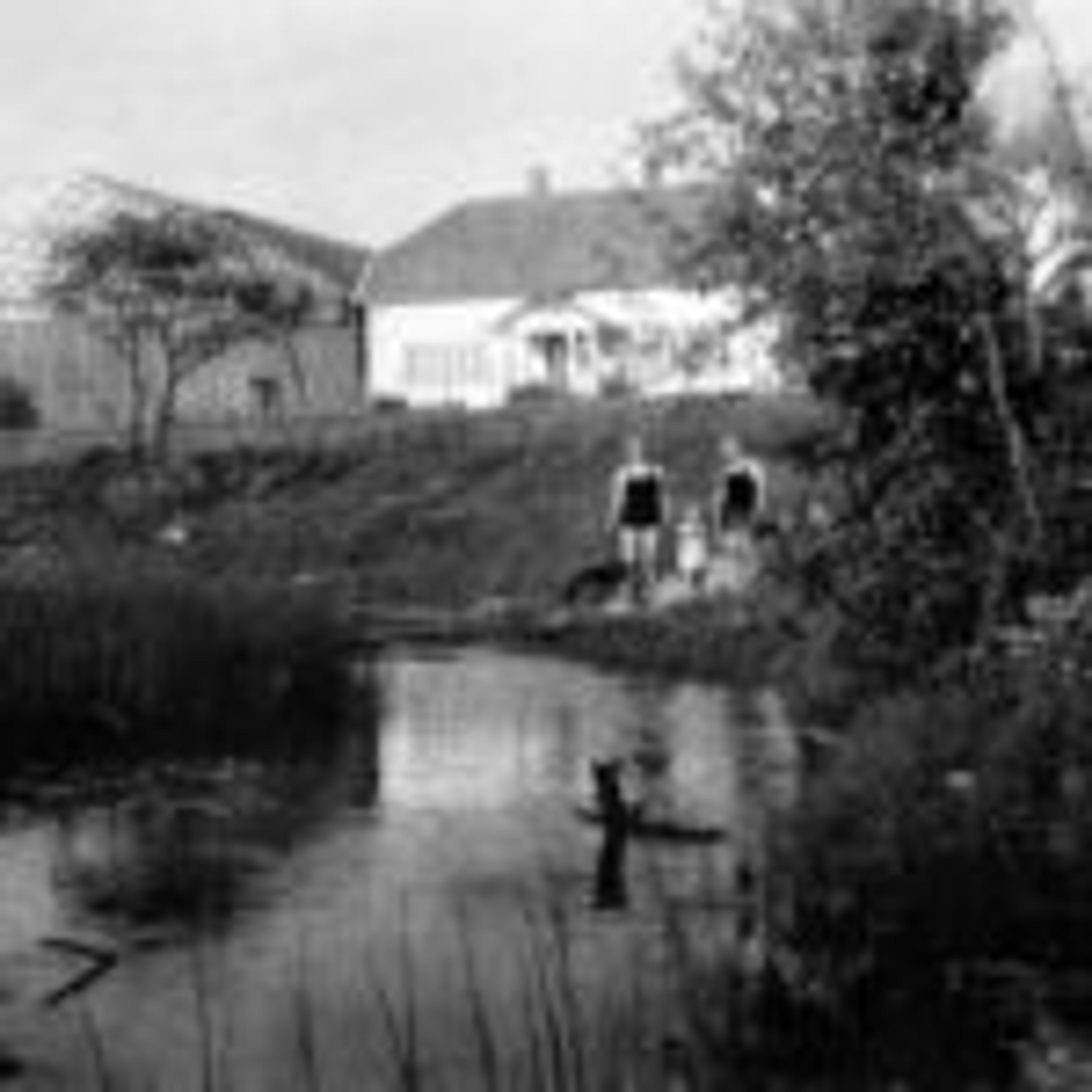BADING I GAMLEDAGER: Flere steder langs Storelva var det badeplasser i tidligere tider. Bildet er fra gården Tangen, sør for Svinevoll. Badinga her tok slutt på grunn av forurensa elvevann. Foto: Våle historielag.
