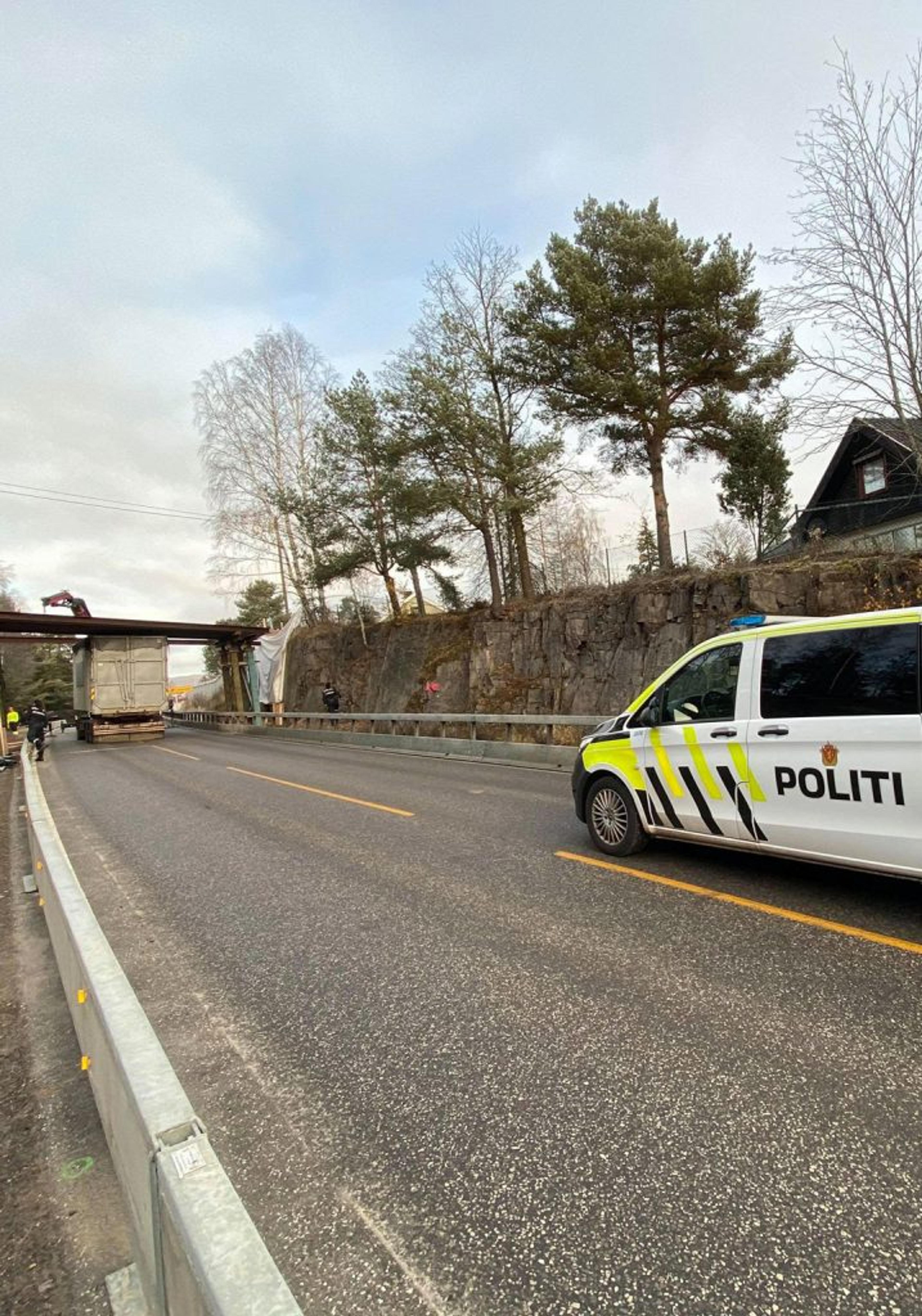 RIMER IKKE: Høyden på elementet tvers over veien rimer ikke med høyden på skiltet – eller mangel på riktig skilt – får ReAvisa opplyst på stedet og fra operasjonssentralen for Politiet i Sør-Øst. Foto: Stian Ormestad.