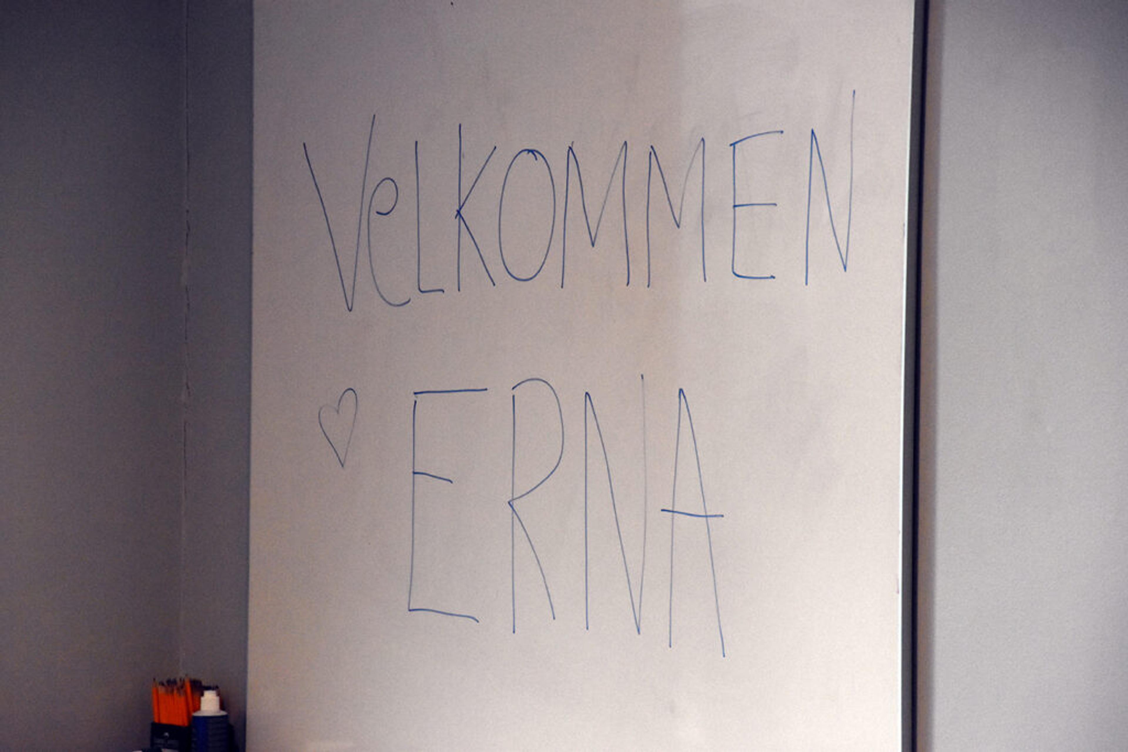 HJERTELIG VELKOMST: På tavla til styrkeklassen. Foto: Stian Ormestad, ReAvisa.