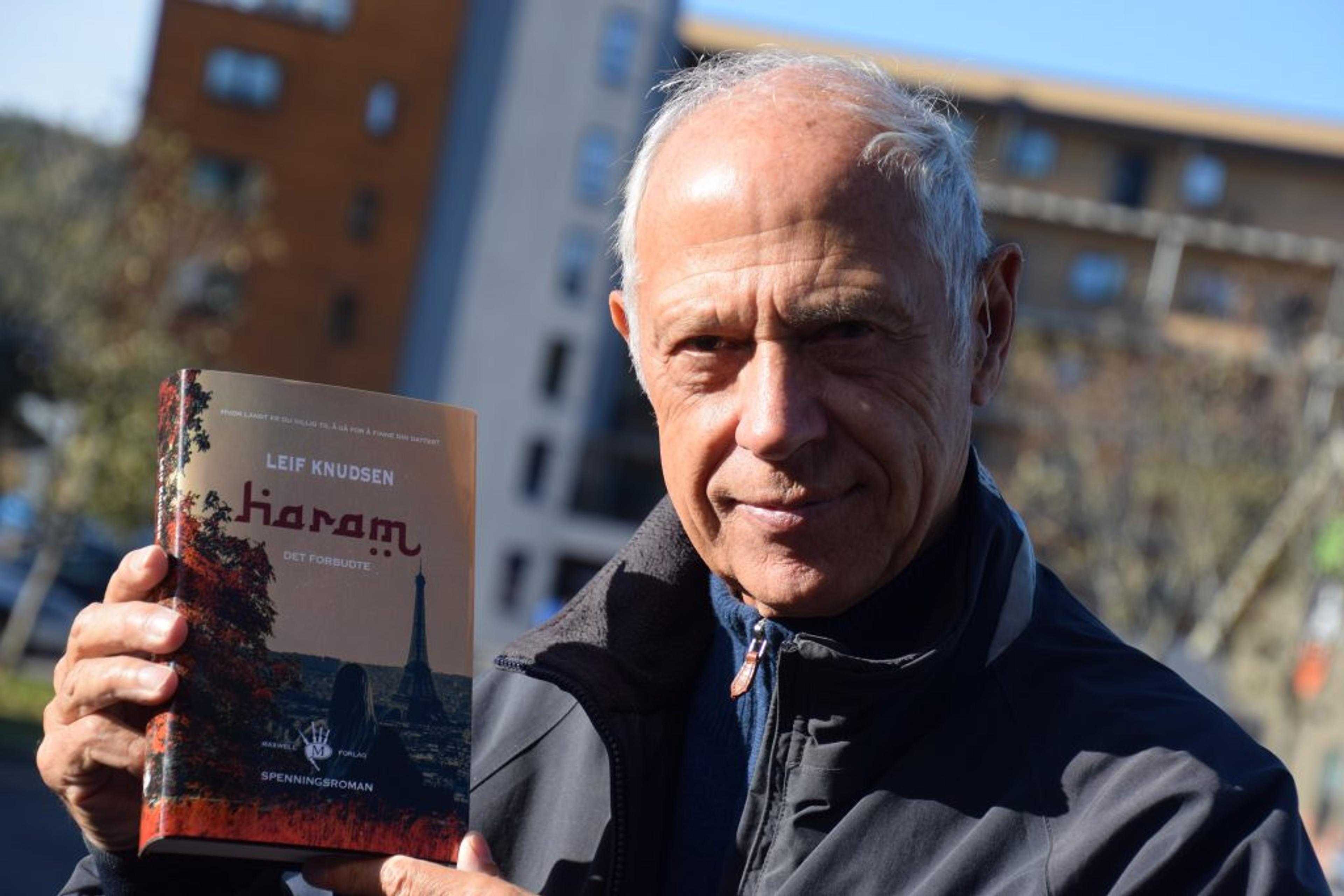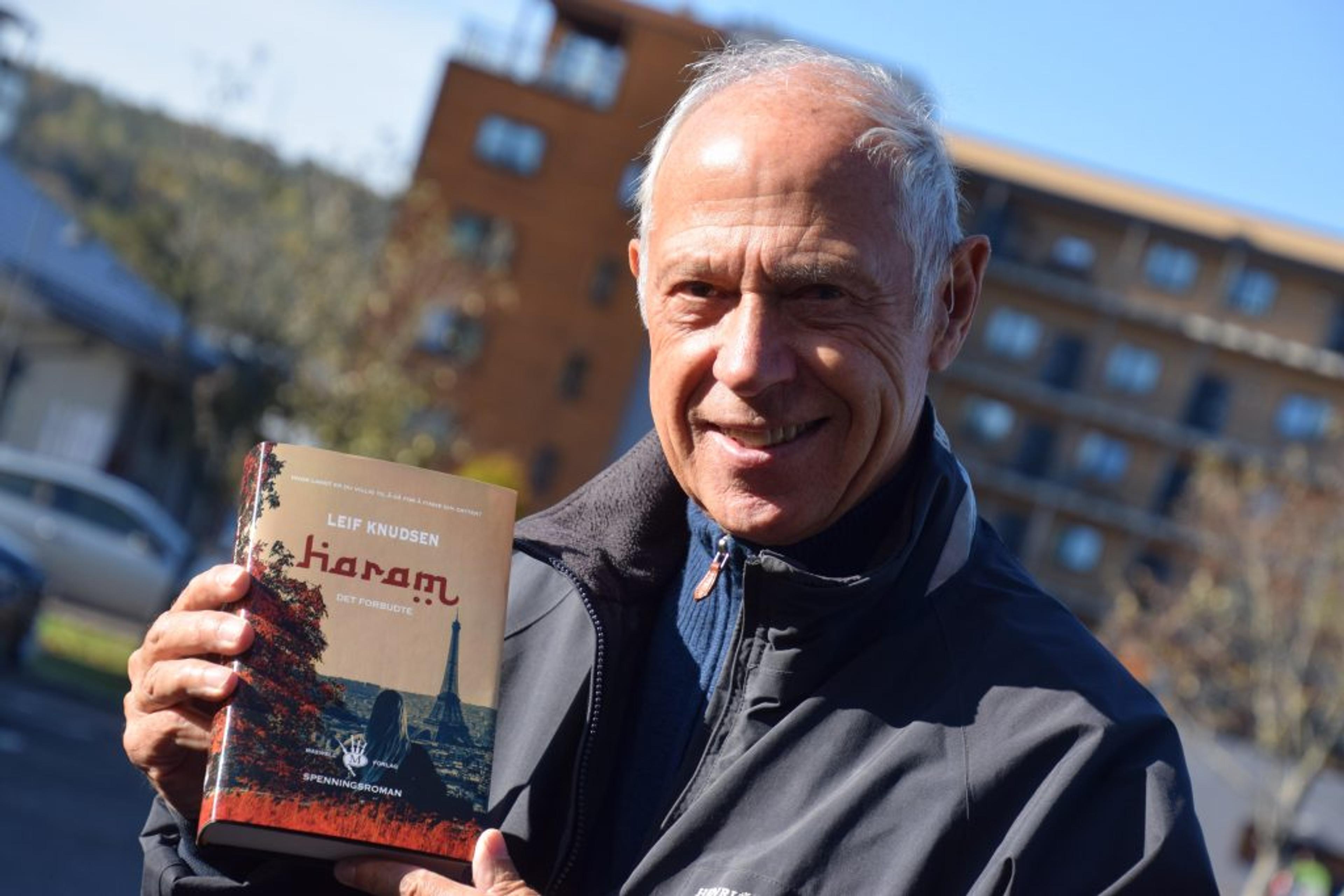 DEBUTROMAN: Leif Knudsen (74) har sin aller første bok klar, og den er i salg hos bokhandleren på Re-torvet og til utlån hos Revetal bibliotek. Foto: Stian Ormestad.