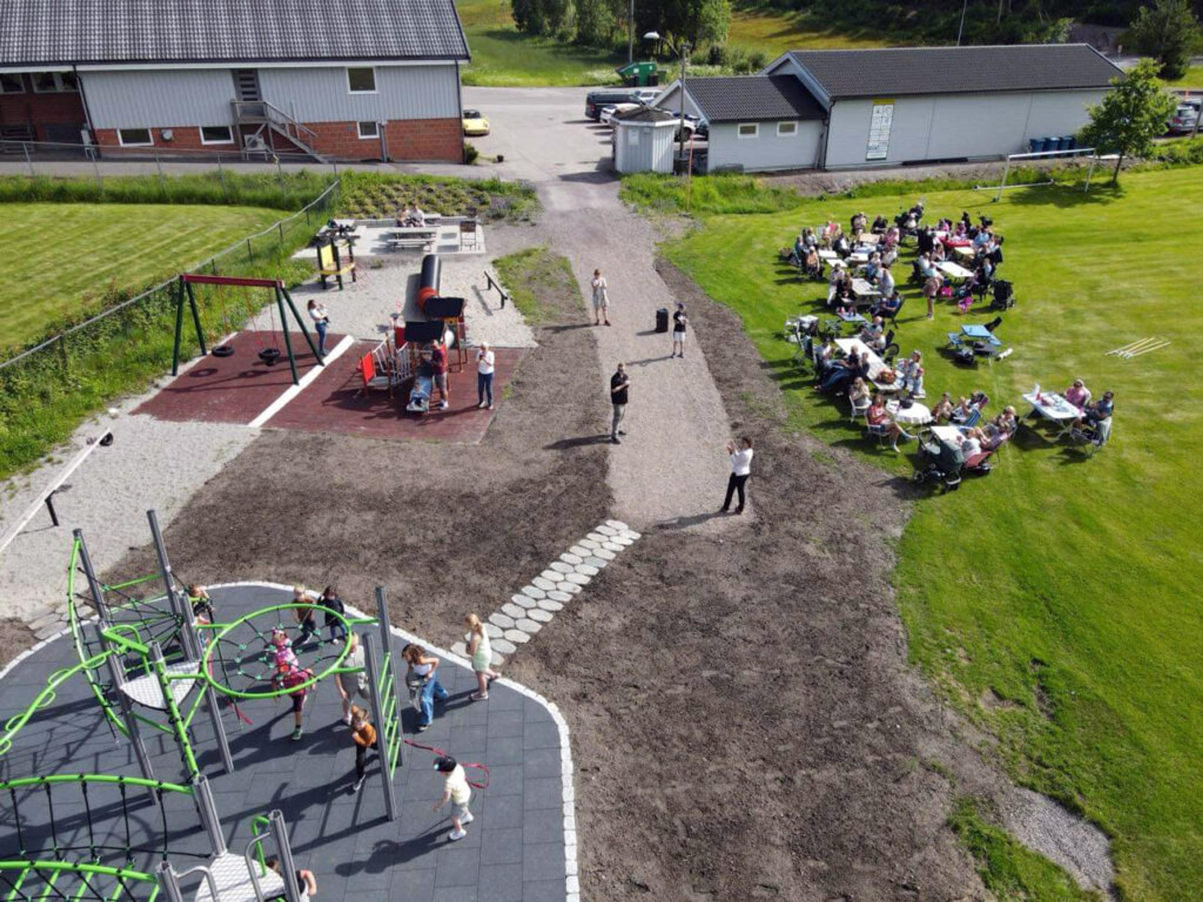 ÅPNING: Lekeapparatet ble høytidelig åpnet under sankthansfesten på Sagatun tidligere i sommer. Foto: Privat.
