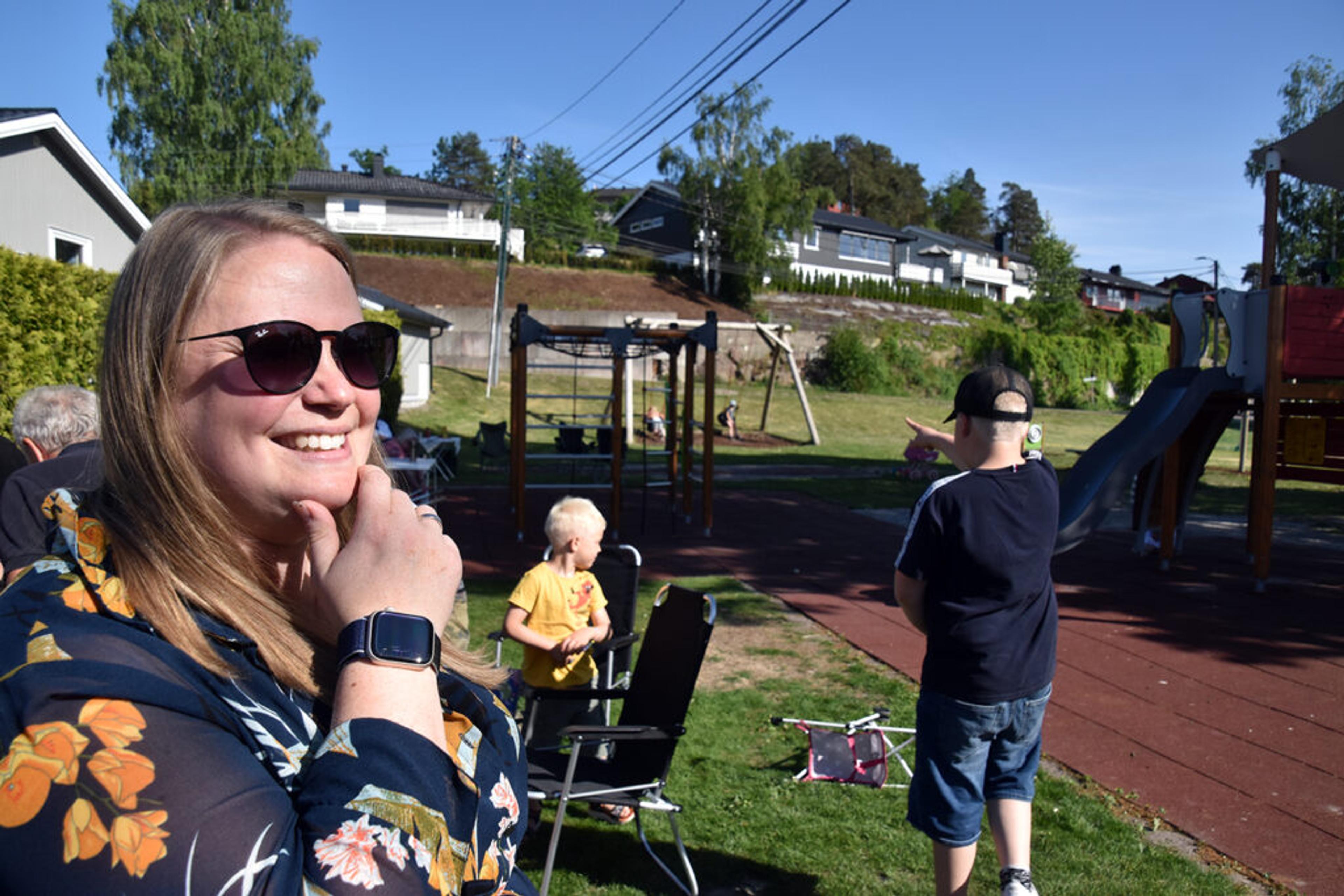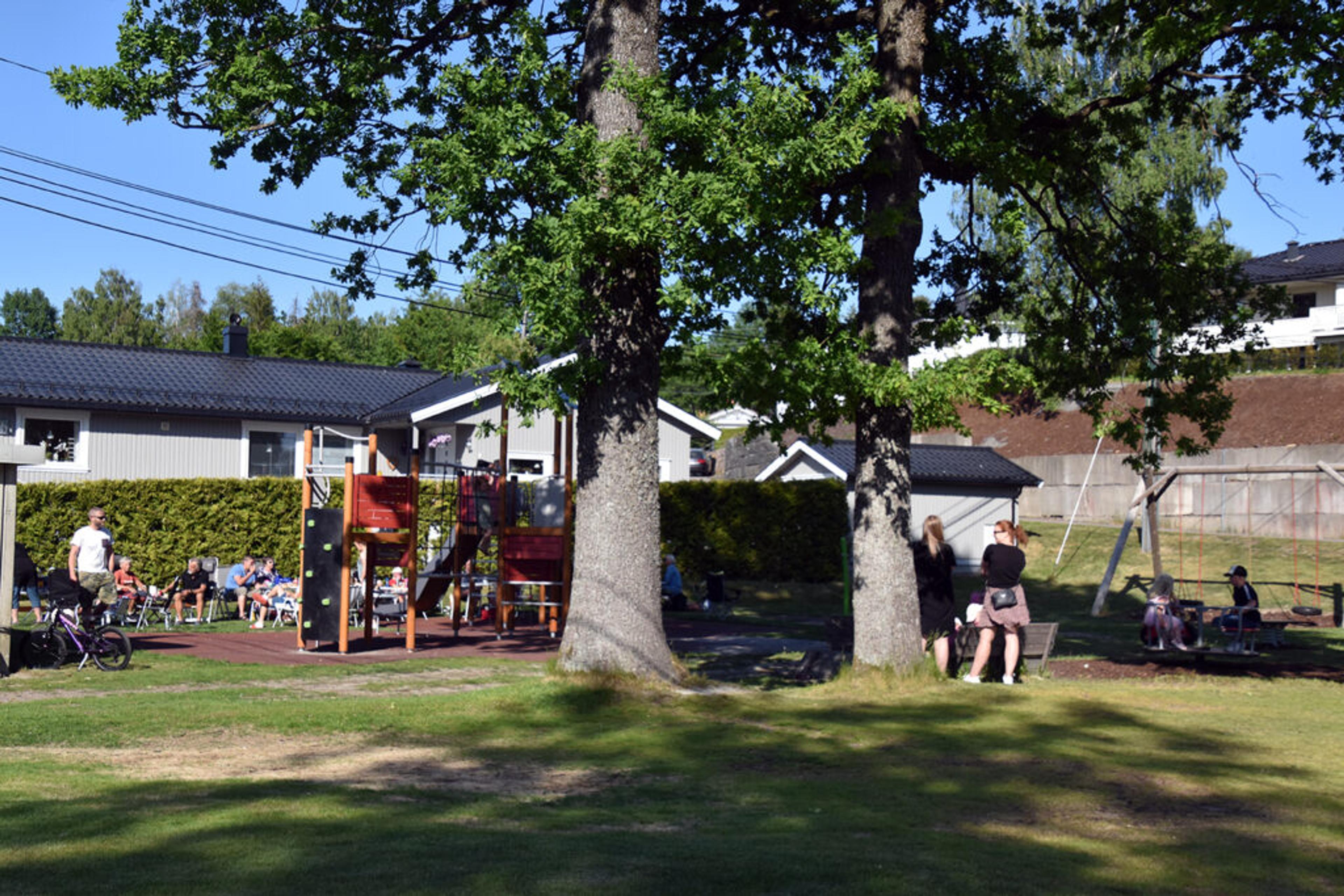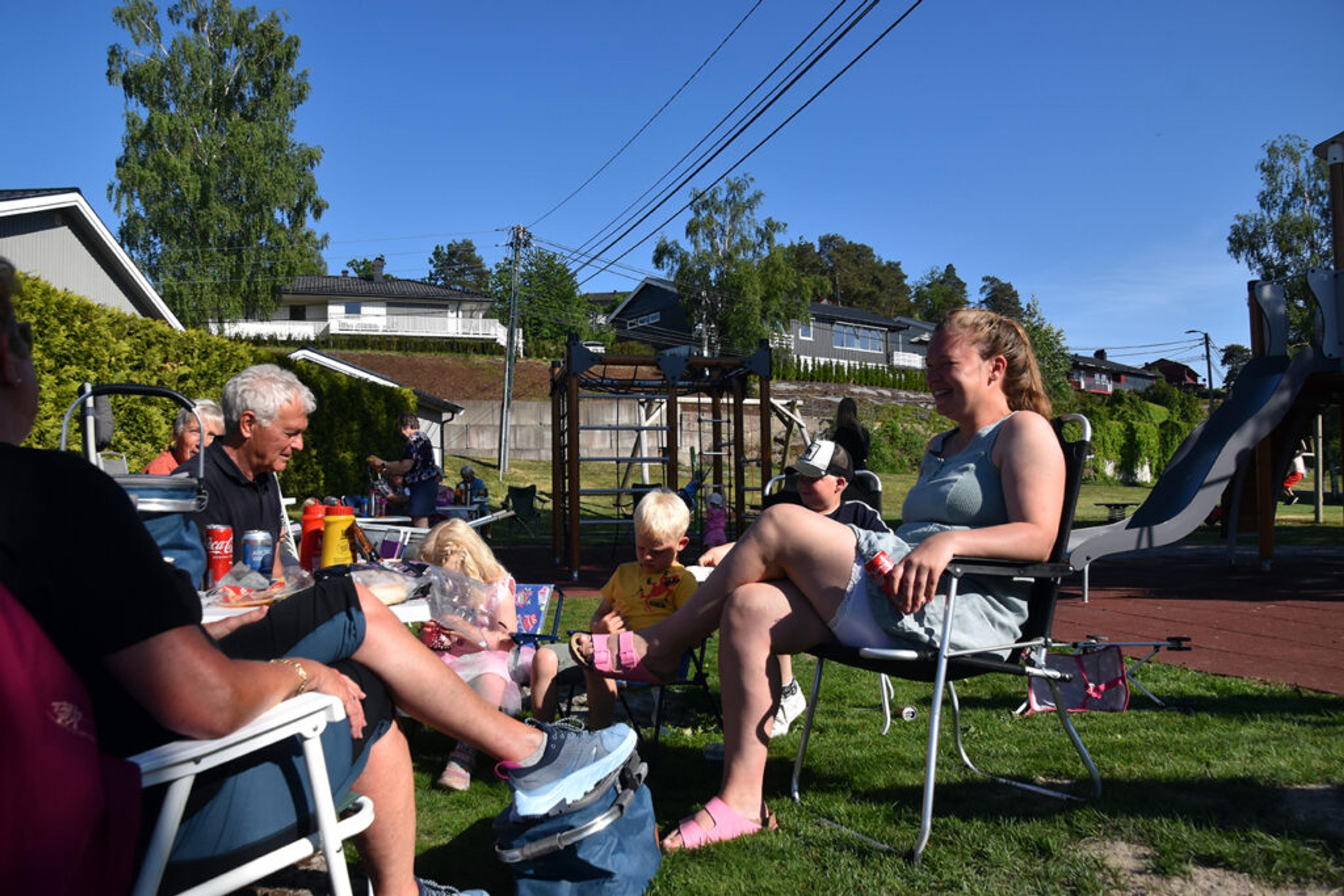 GRILLFEST: Nabolaget og alle andre interesserte kom for å feire den offisielle åpninga av lekeplassene på Revetal i kveld torsdag 8. juni 2023. Foto: Stian Ormestad, ReAvisa.
