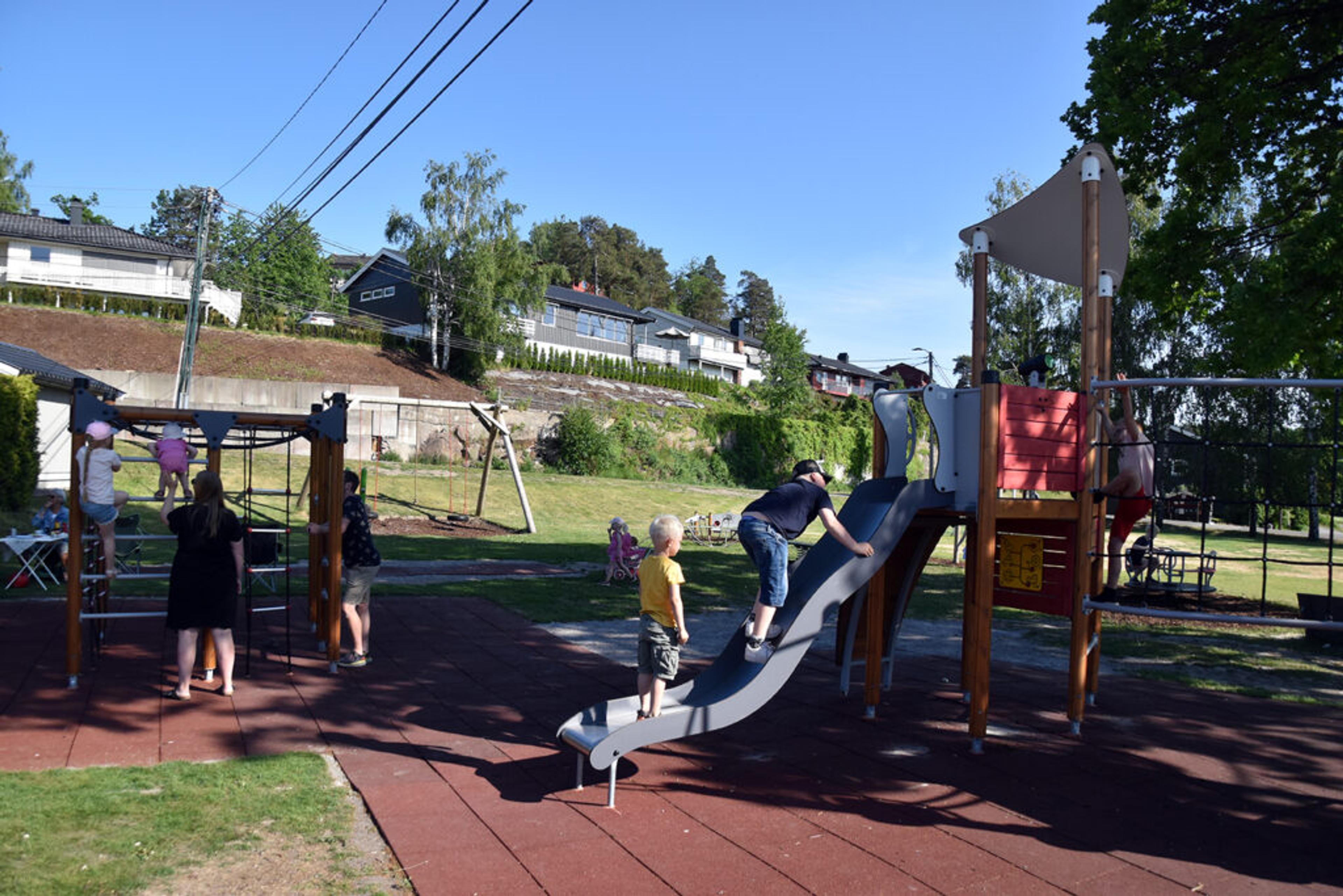 HØYT OG LAVT: Aktive unger, hver dag, hele tida, på de nye flotte lekeplassene. Foto: Stian Ormestad, ReAvisa.