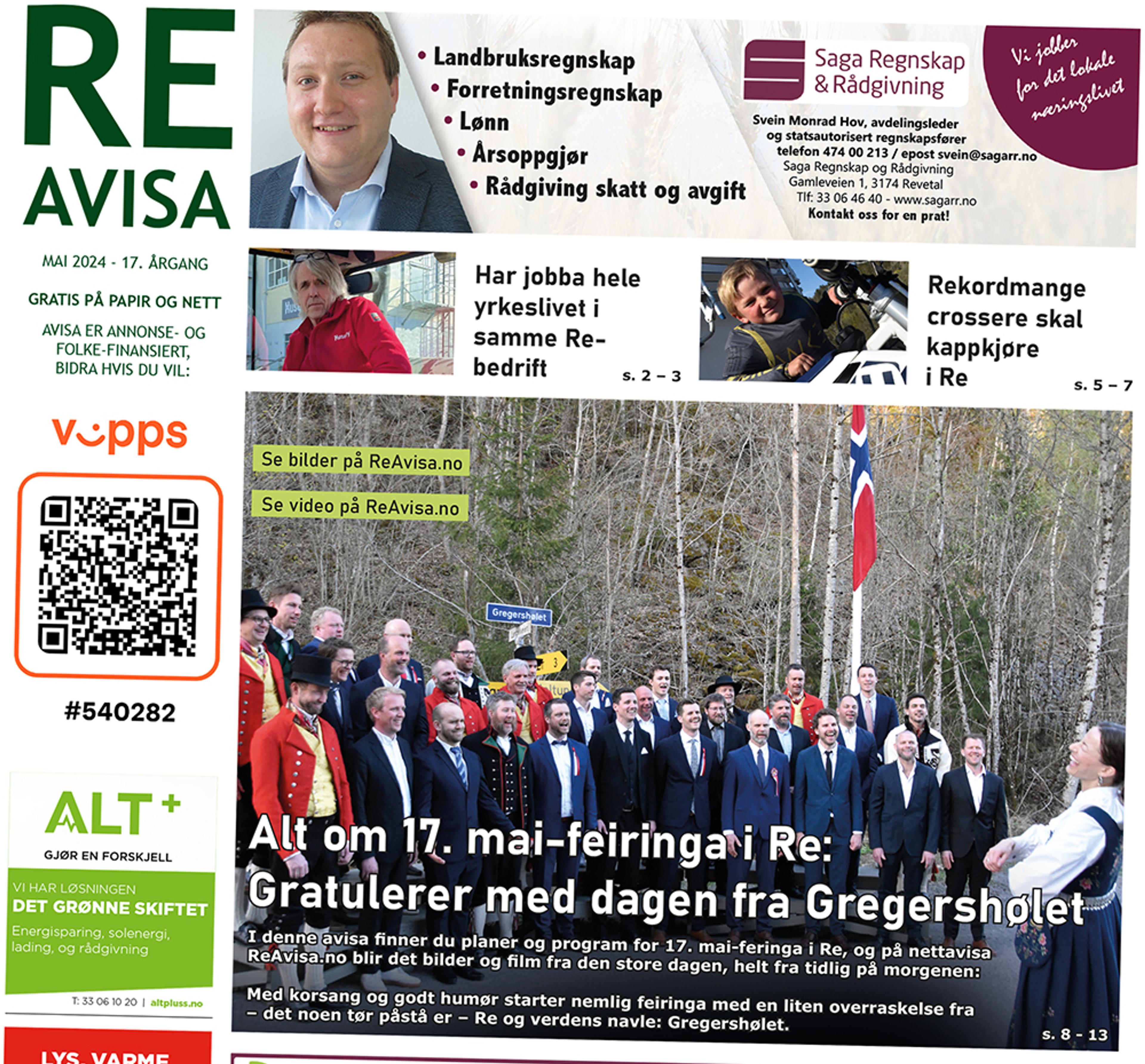 La lokalavisa opplyse deg om ting og tang som skjer i ditt lokalmiljø – og nå spesielt den nært forestående nasjonaldagen: Du finner alt av planer og program for 17. mai-feiringa i Re.
