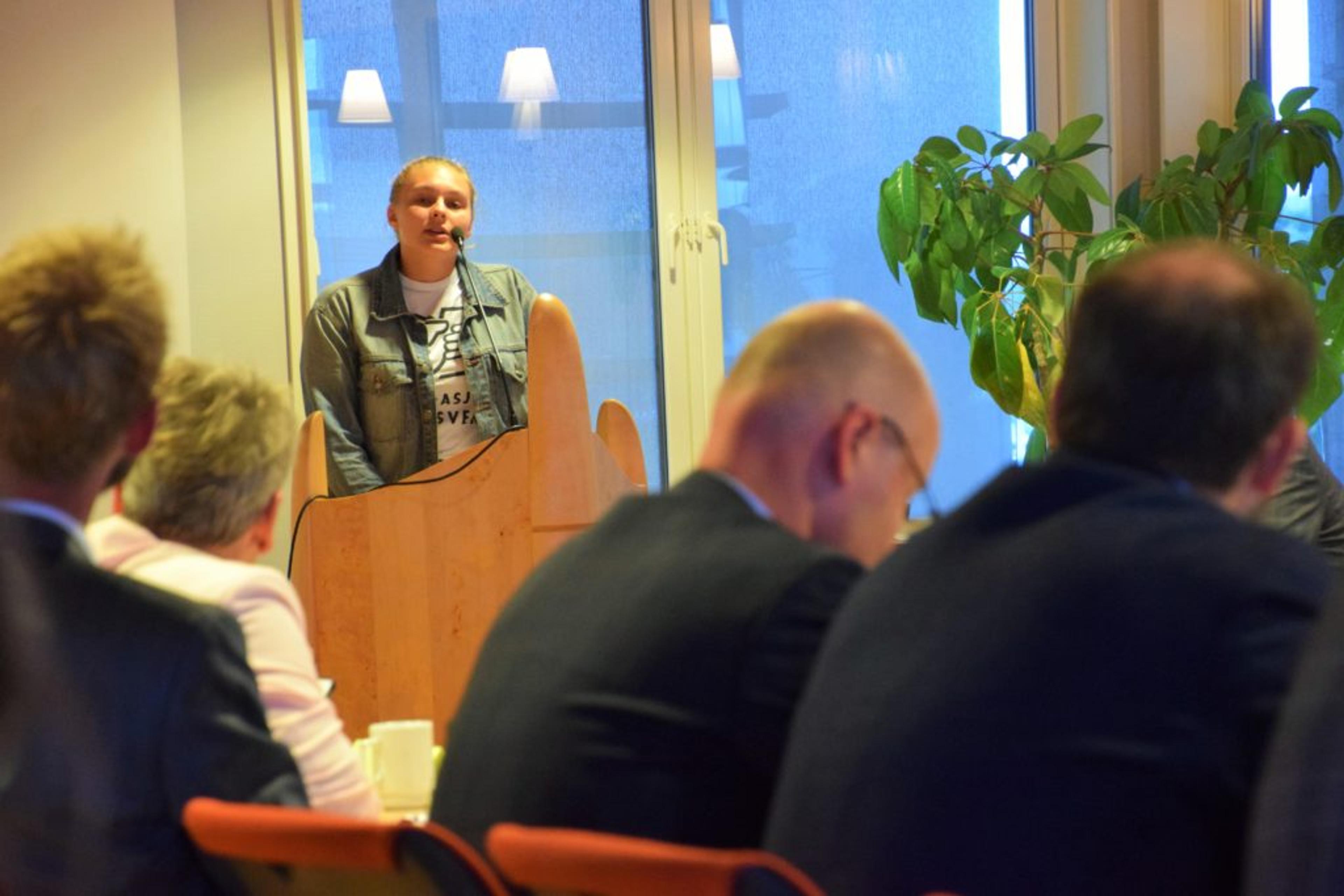 UNG, ENGASJERT RE-STEMME: Kristine Solheim Andresen, her på kommunestyrets talerstol under åpen post i forbindelse med en annen sak tidligere. Arkivfoto: Stian Ormestad.