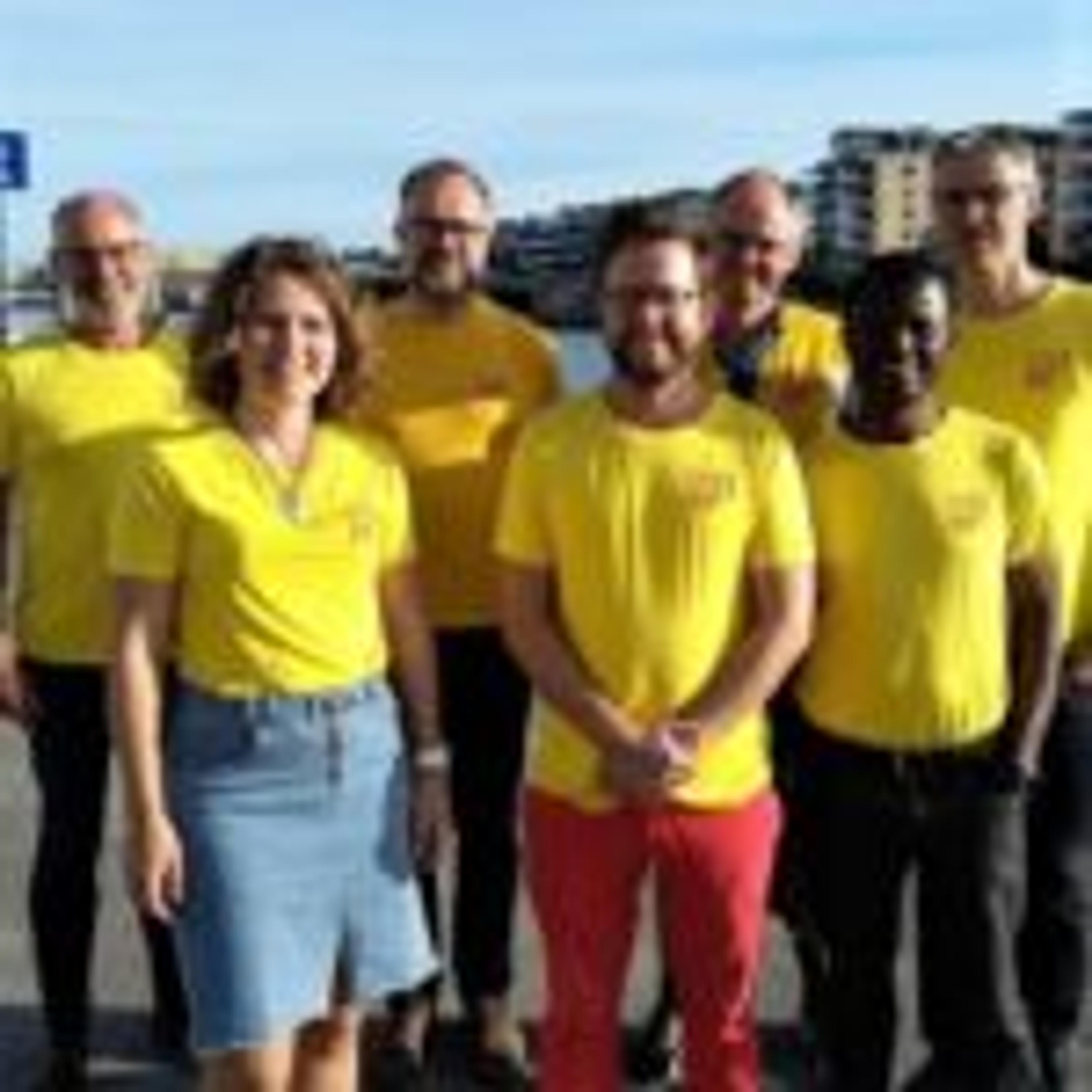 KLAR FOR KRF-VALGKAMP: Denne gulkledde gjengen dro i gang KrFs valgkamp i Tønsberg-området. Foto: Privat.