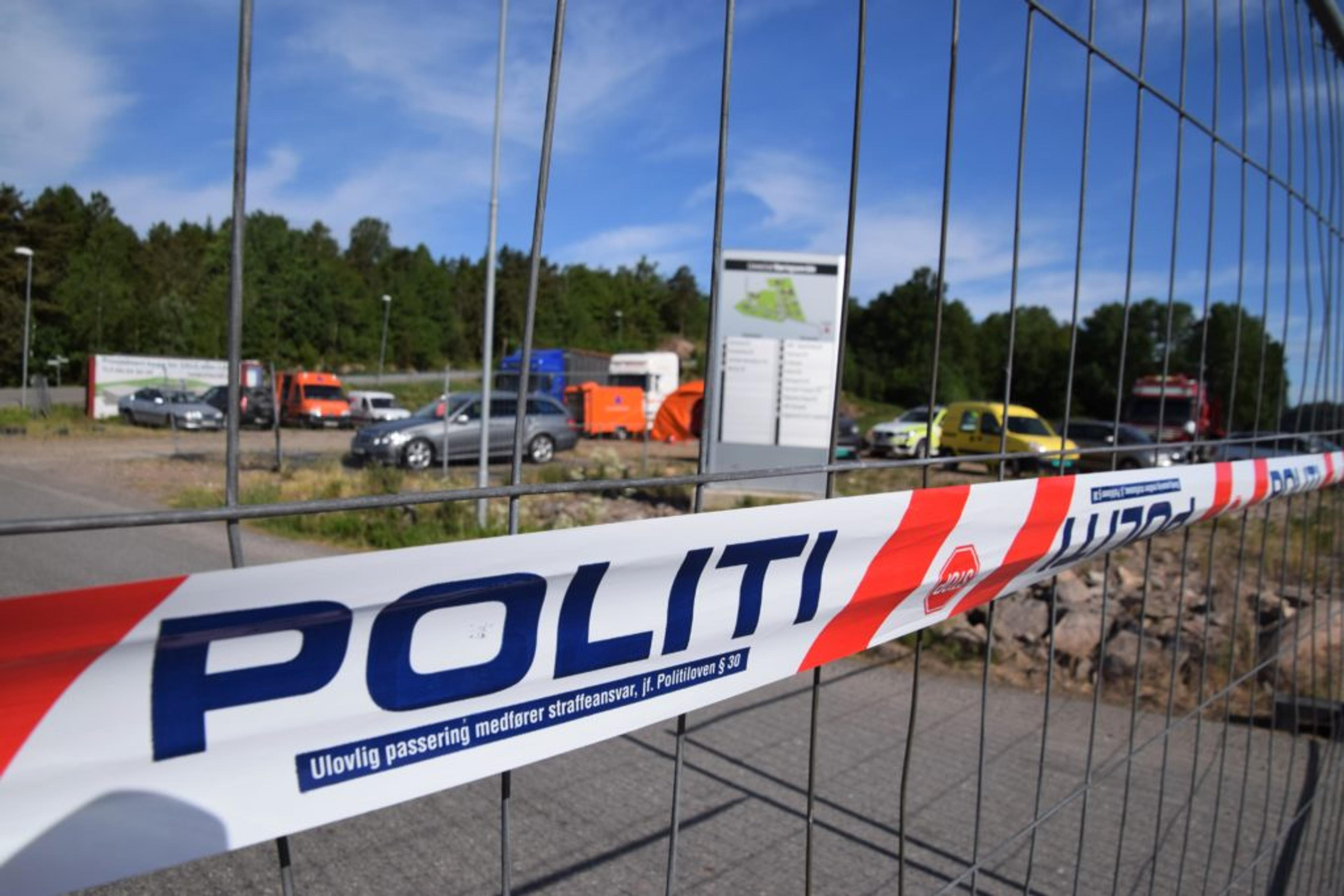 Bjuneveien skal stenges i perioder, ifølge politiet på stedet. All trafikk inn på næringsområdet stoppes av høye gjerder.