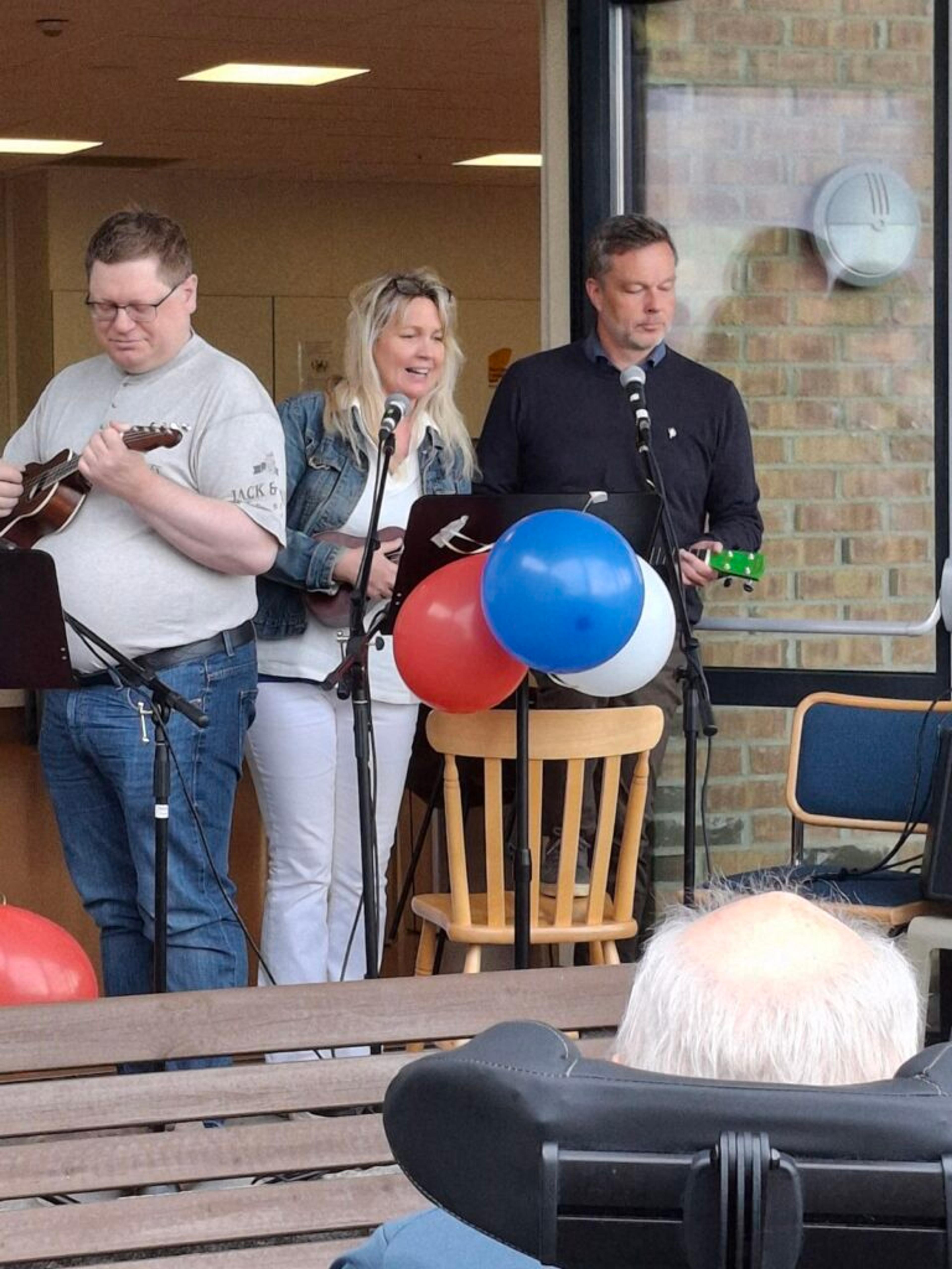 Årets Livsglede-dager på Re helsehus starta allerede torsdag forrige uke: Torsdag 23. mai var det sang og musikk på stuene rundt om på Re helsehus. Da var det besøk av tidligere kulturkoordinator på helsehuset, Gro Hansen, som kom med trombone, fløyter og sang.