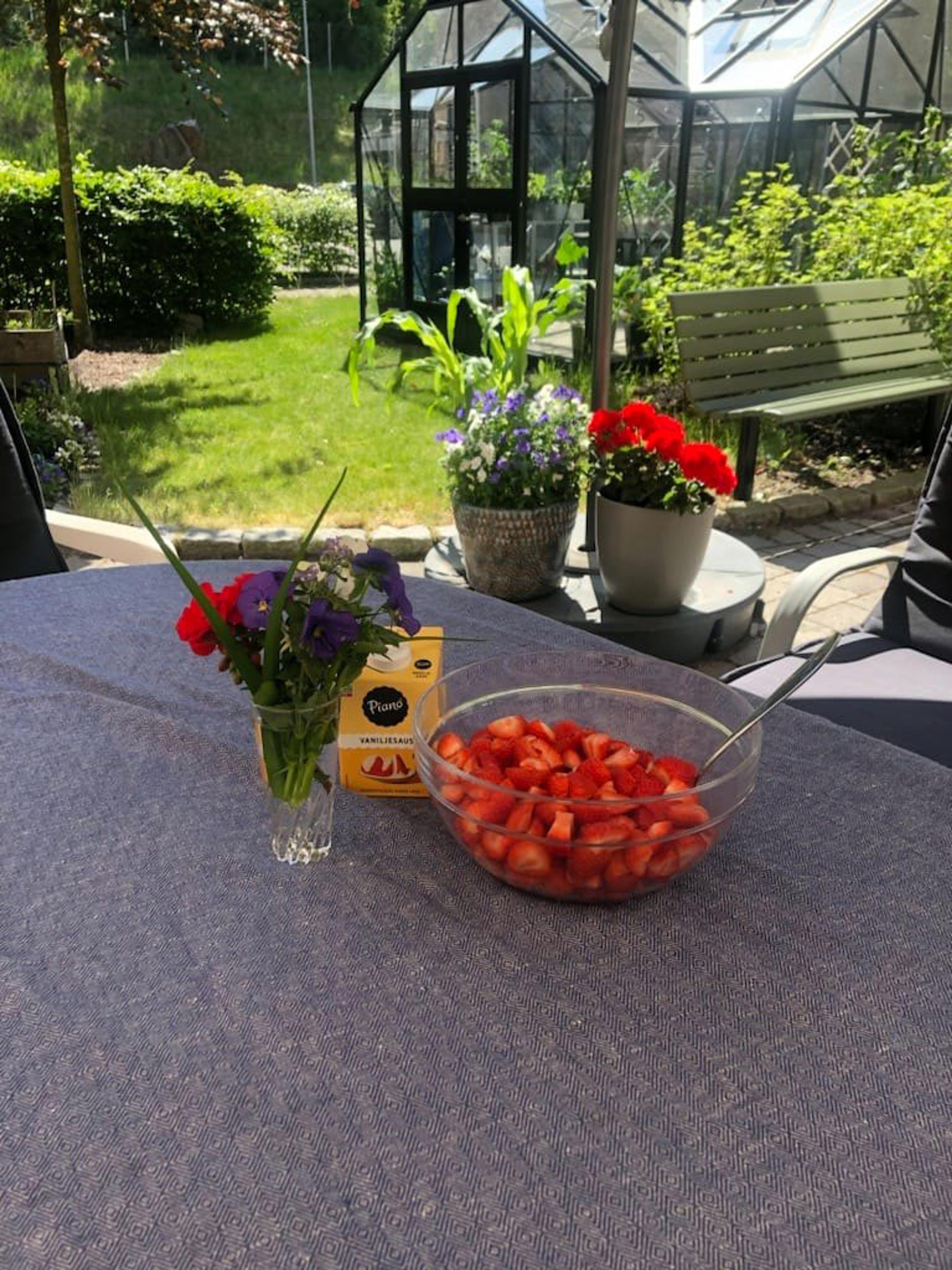 JORDBÆR I SOLA: Livsglede med små og store gleder hele uka lang på Re helsehus. Foto: Privat.