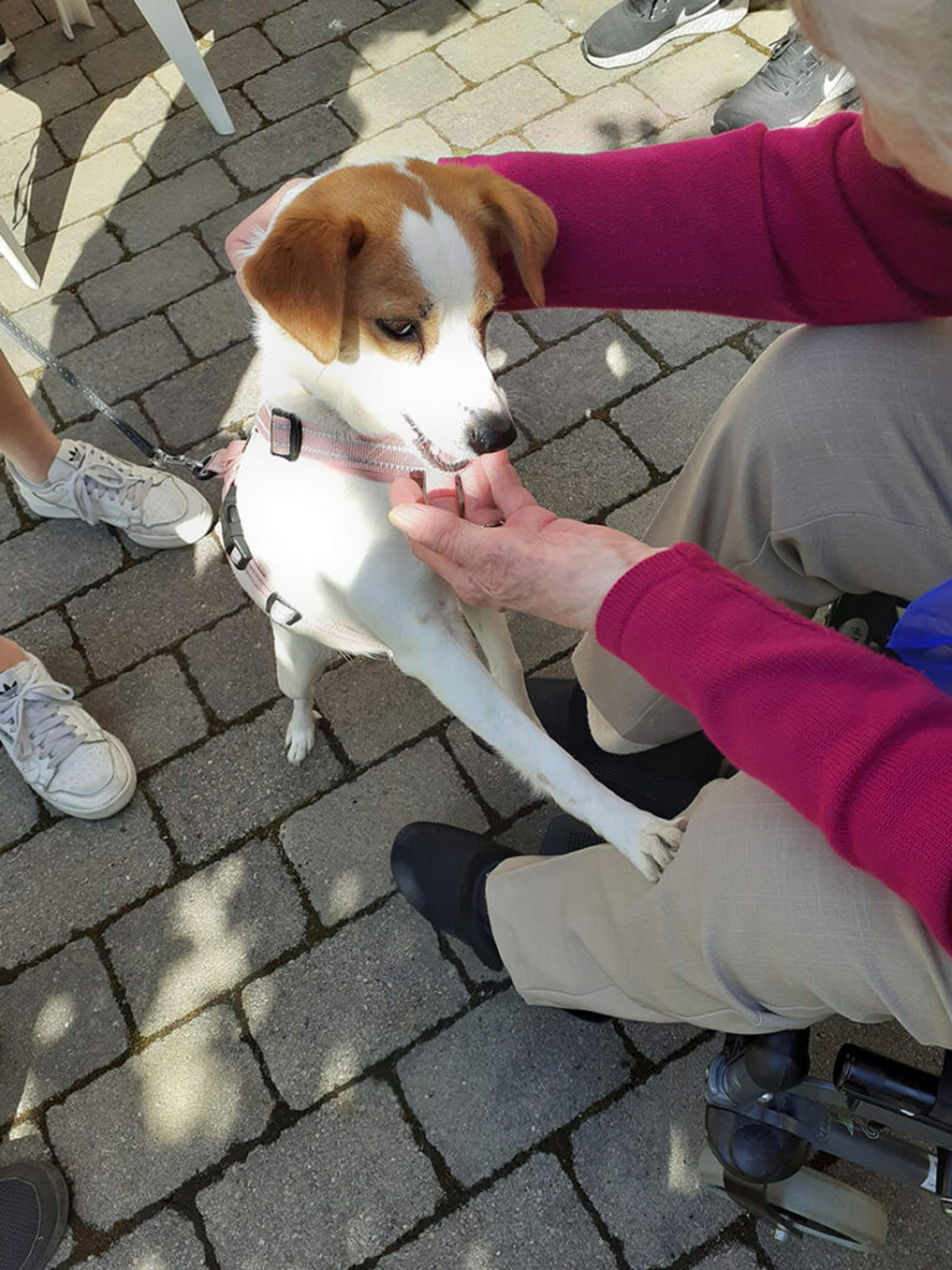 Onsdag var det en samling med hund i sansehagen, der to- og firbeinte fikk flere hjertelige møter med mye smil og slikk. Onsdag var det også andakt med nattverd i seniorsenteret.