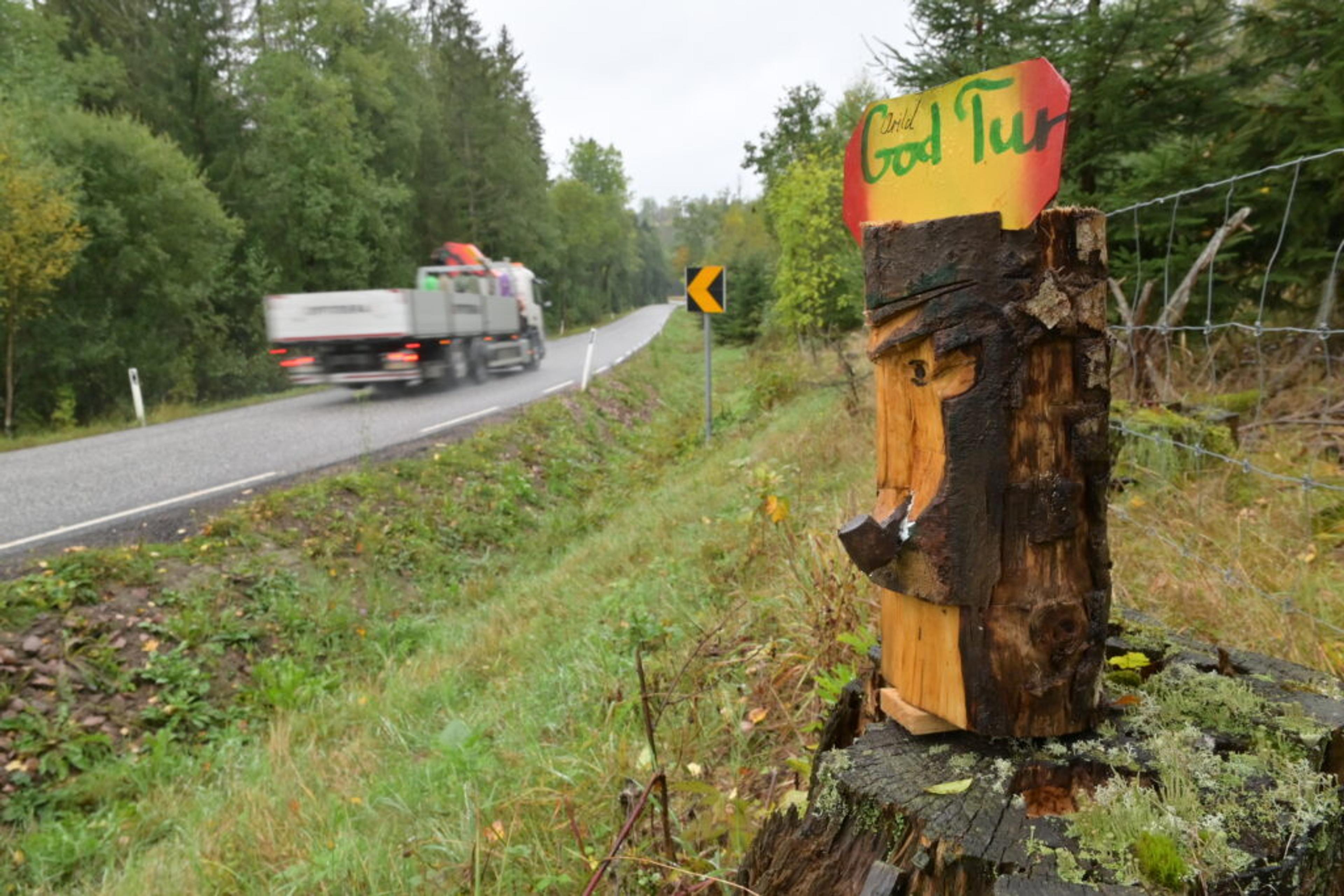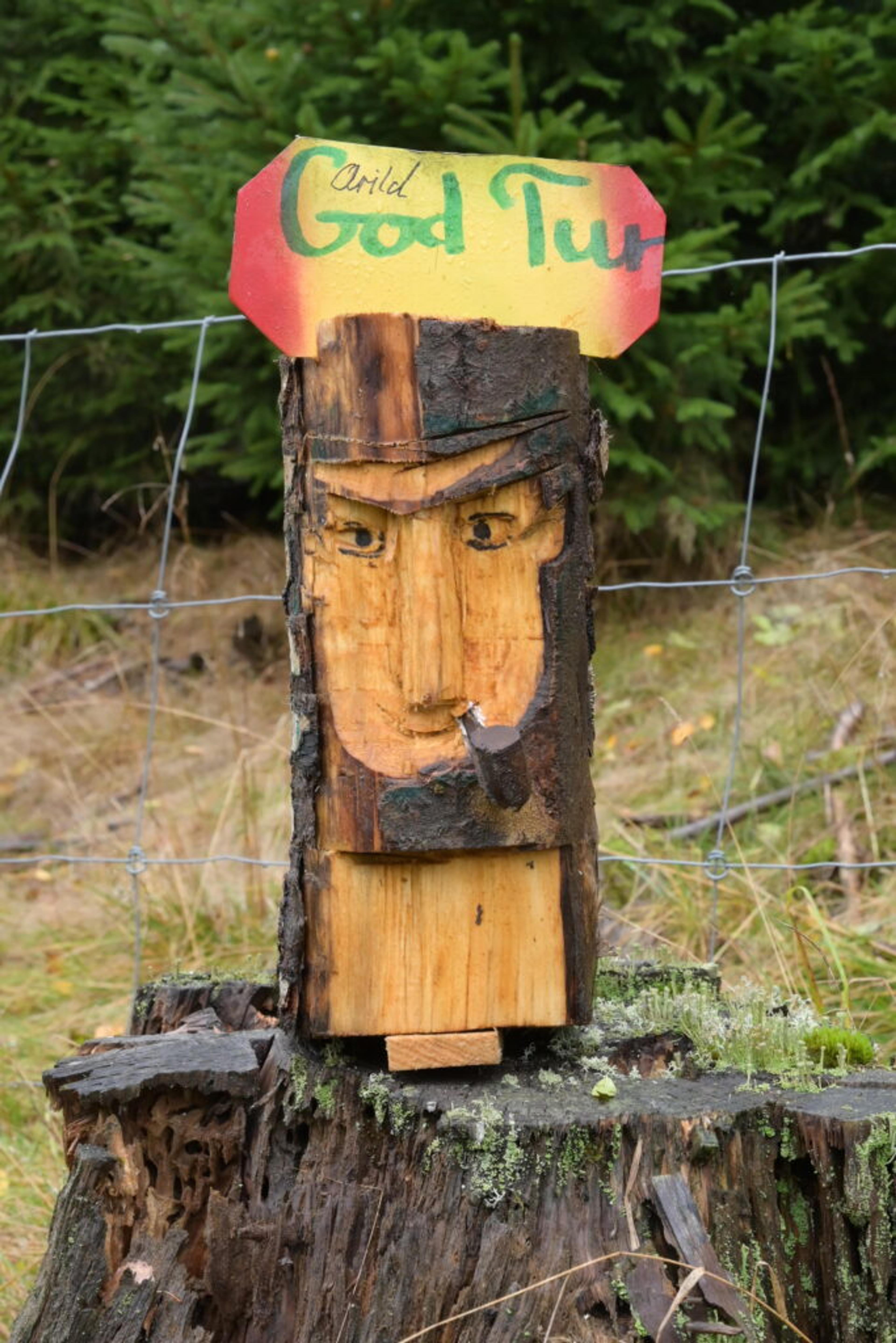 GODT BESØKT KUNSTVERK: Få har vel kunst som blir sett av flere, enn den som står bak disse treskulpturene som dukker opp både her og der – de fleste i Re, men også flere i en god omegn rundt Re. Foto: Roar Ree Kirkevold, Magasinet Skog.