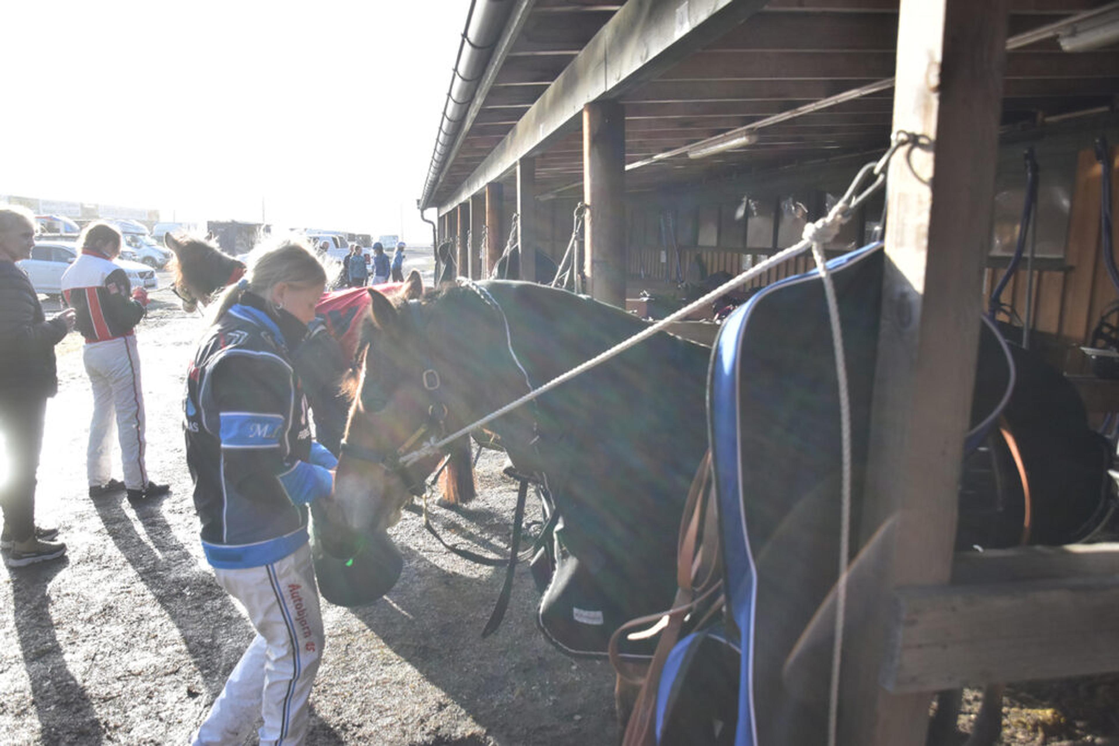 SISTE PEPTALK: Maren og Calvin skal straks starte på Jarlsberg, og Maren har trua. Det er fordi ponnien bæsja, og bæsjen var løs. Her teller alle detaljer. Foto: Stian Ormestad, ReAvisa.