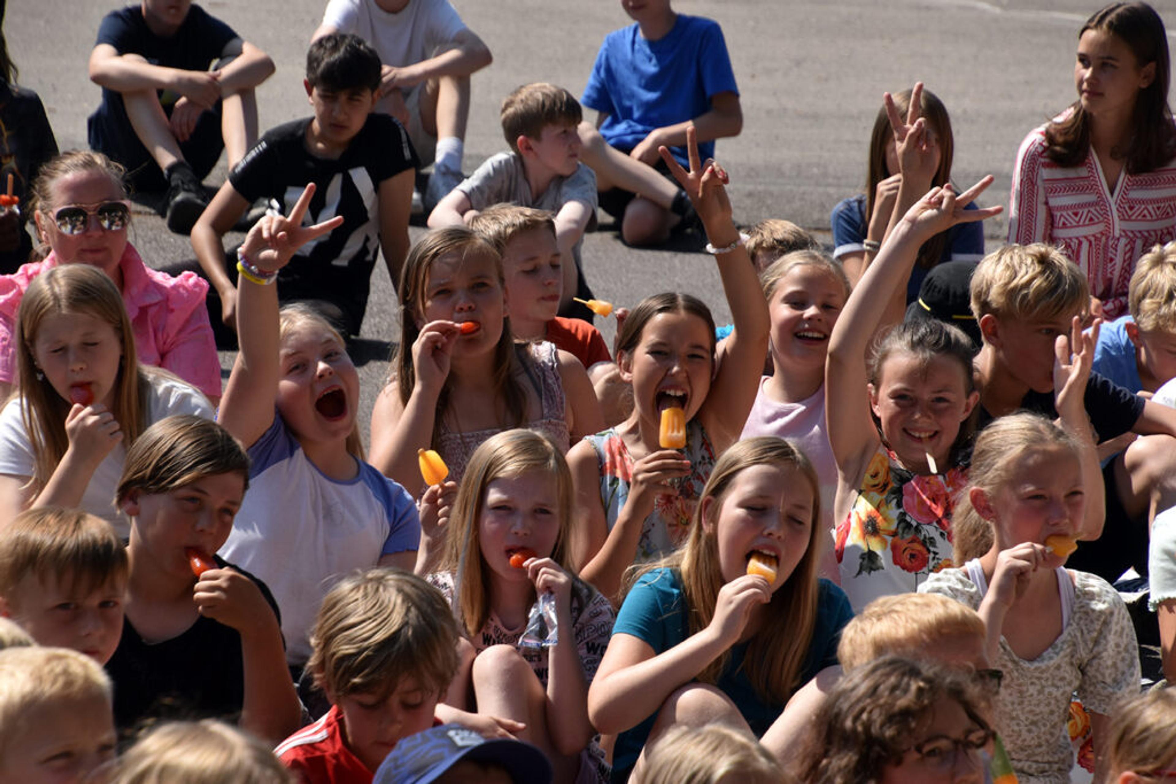 Men mange hadde tippa rekti, og to av elevene ble trekki ut som vinnere. Det var is til alle, og jubelen sto i taket da de siste maskene falt.