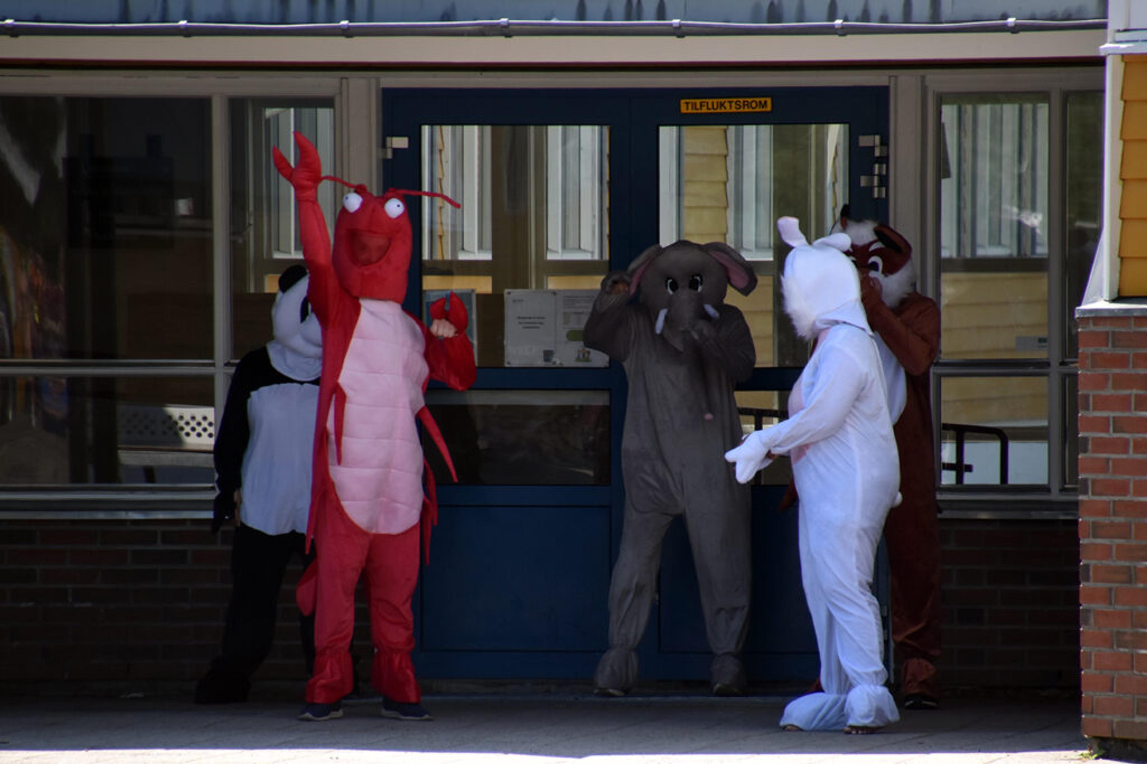 MASKORAMA PÅ KIRKEVOLL SKOLE: Det var noe skikkelig lureri, helt fram til da de to siste maskene falt i dag, på siste skoledag. Foto: Stian Ormestad, ReAvisa.