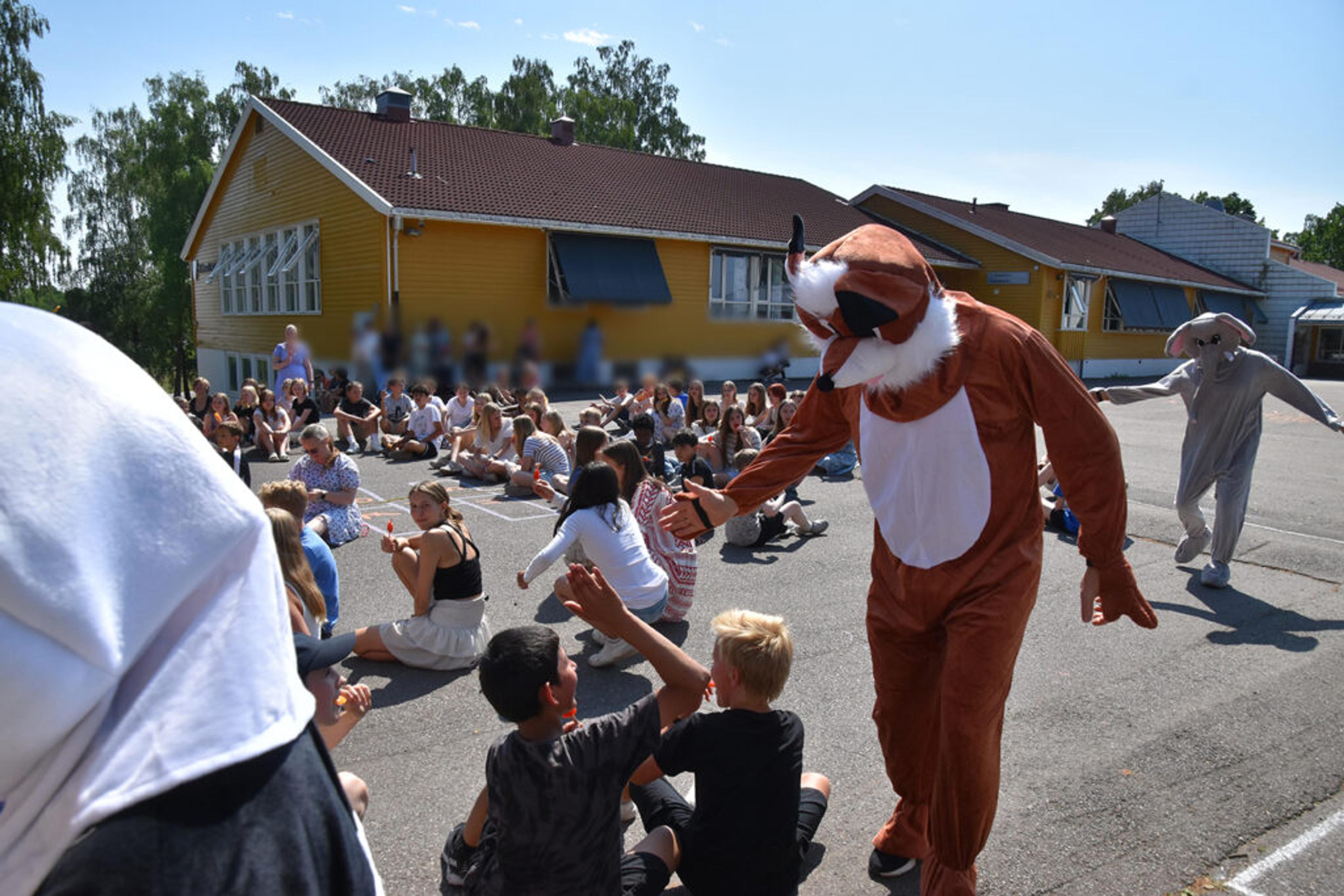 – MIKAEL!!! Harry Hummer, eller det vil si Mikael, har klart å kjøre showet helt ut til siste skoledag. Foto: Stian Ormestad, ReAvisa.