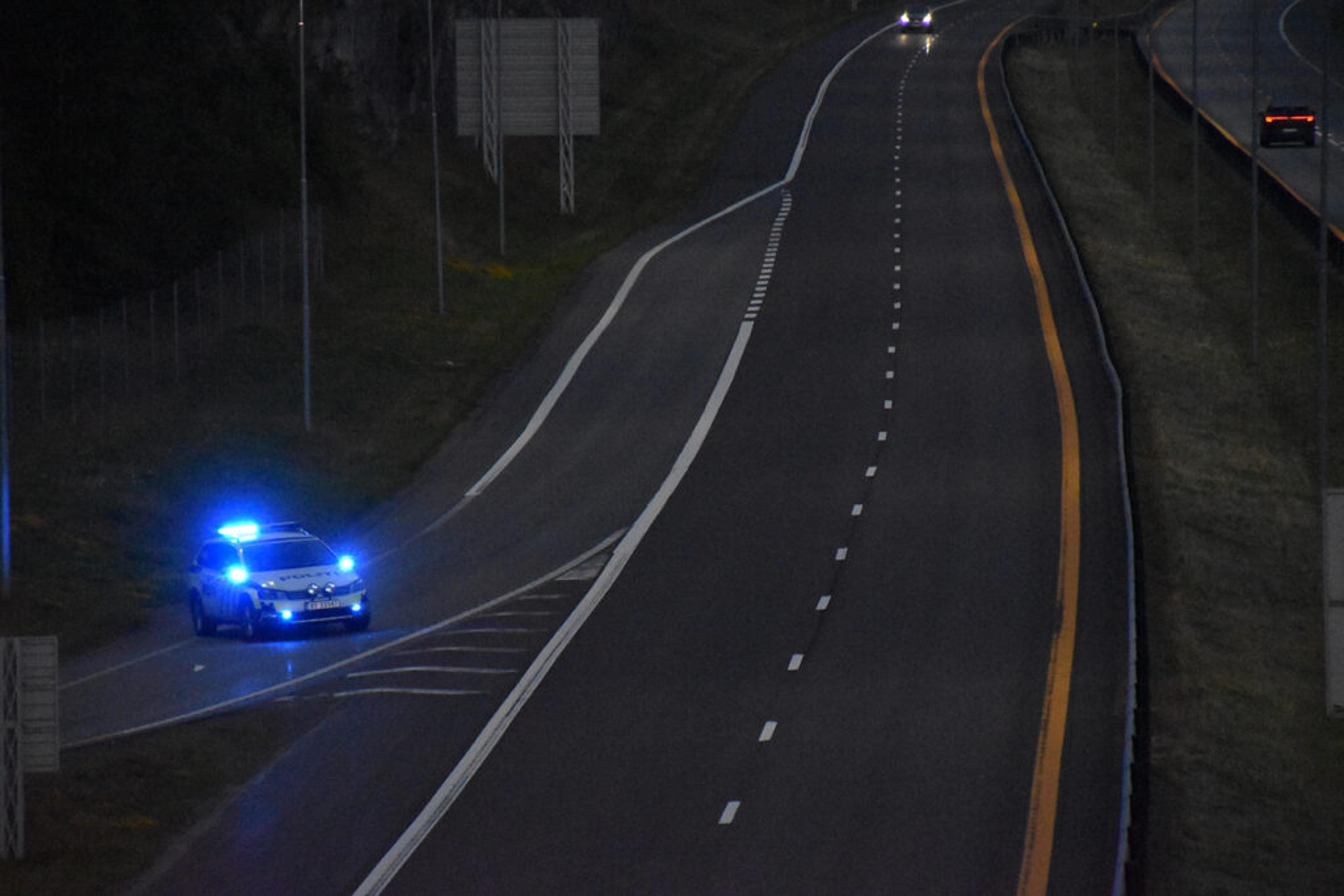 STENGT: Avkjøringa til Undrumsdalskrysset i nordgående retning på E18 er stengt. Foto: Stian Ormestad.