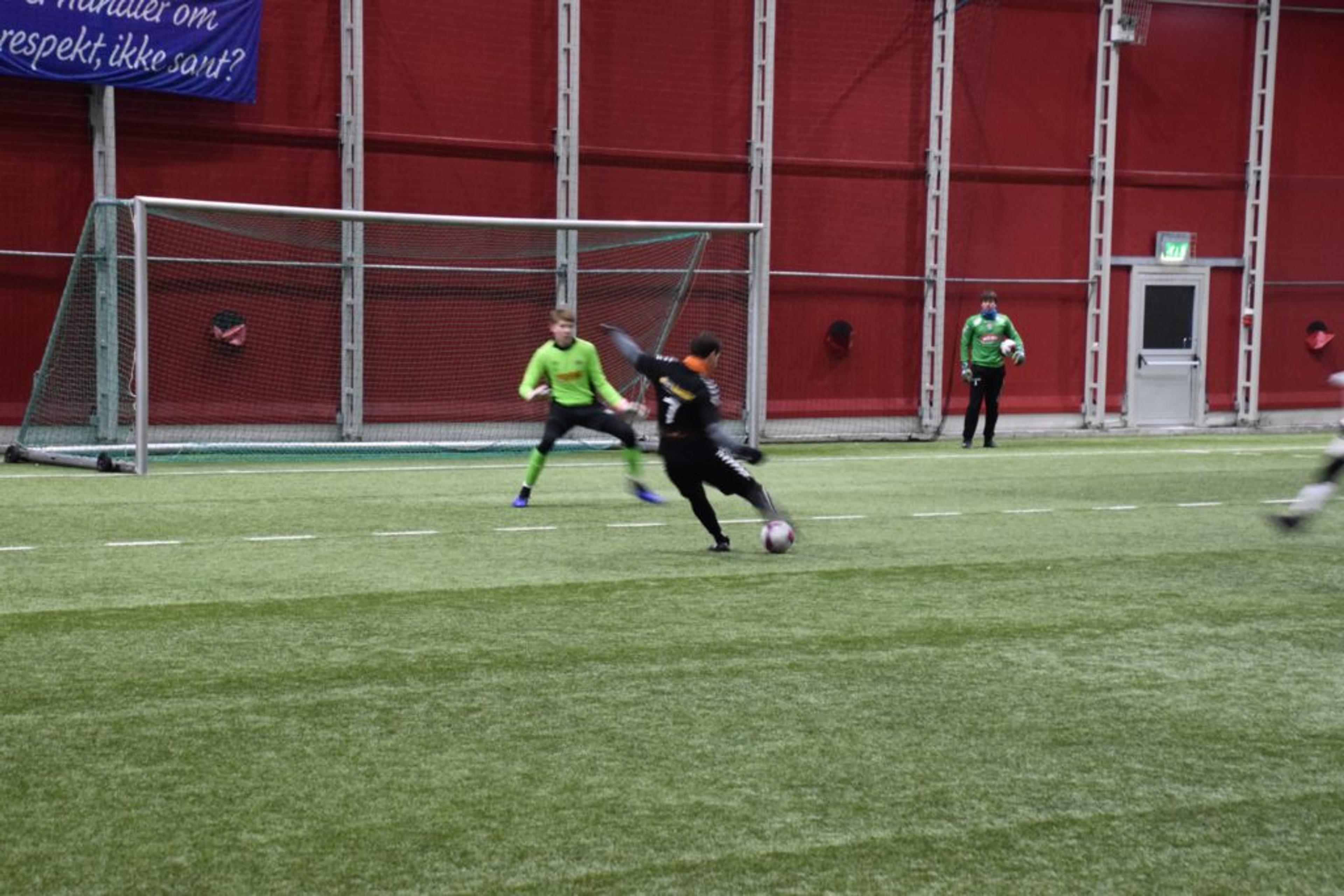 SCORER: Simen Wifstad sørger for tomålsseier i semifinalen mot Runar. Foto: Stian Ormestad.