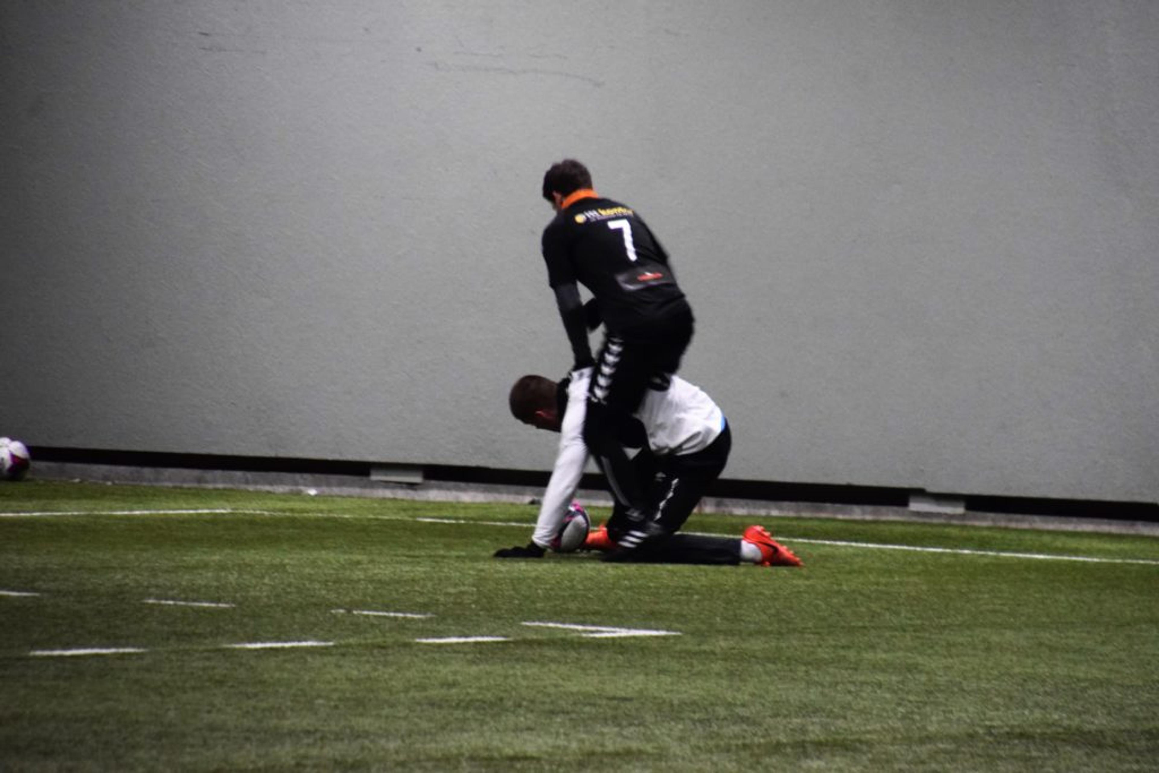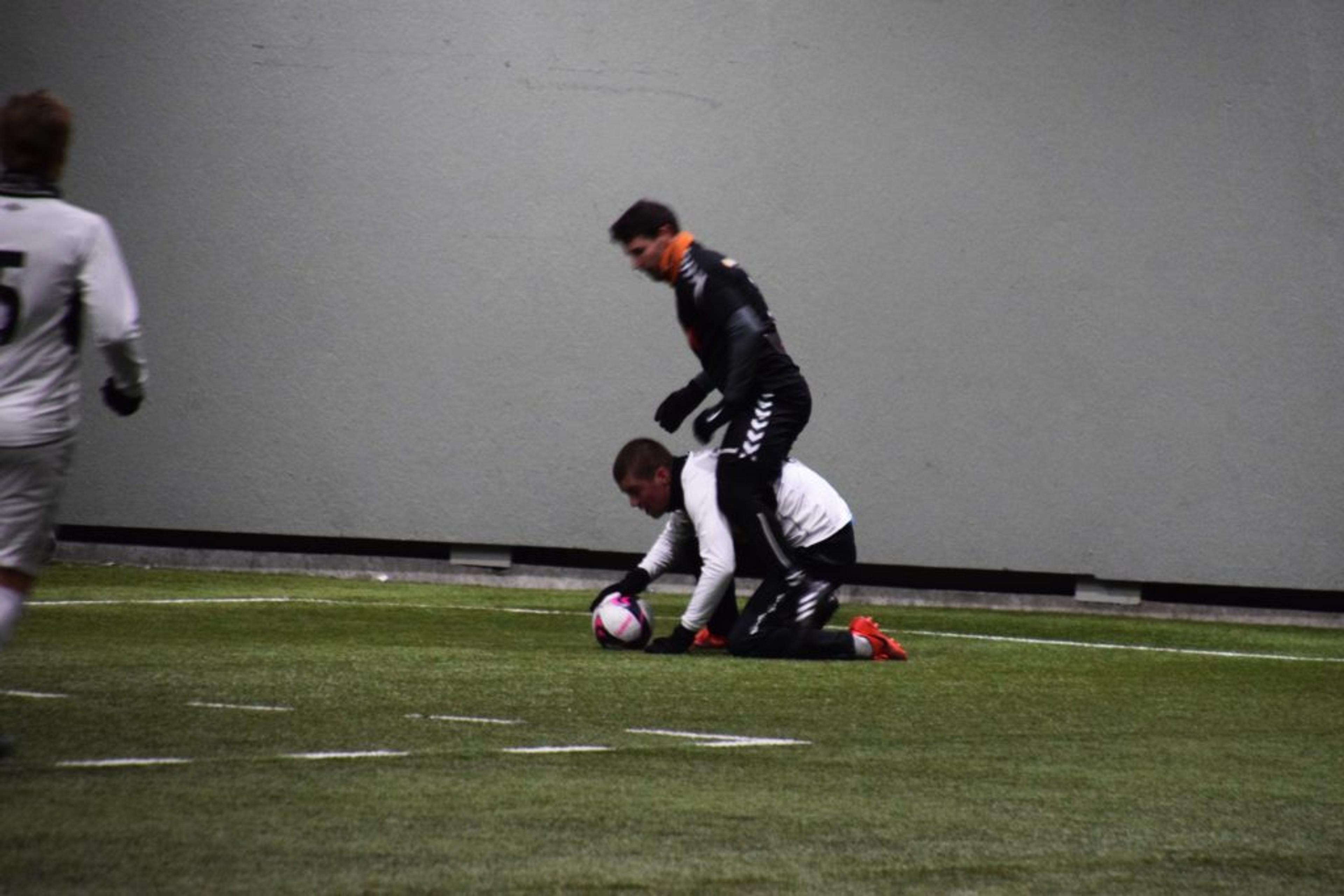 FOTBALL ELLER STIV HEKS? Simen ender etter hvert opp på ryggen til motspilleren. Foto: Stian Ormestad.