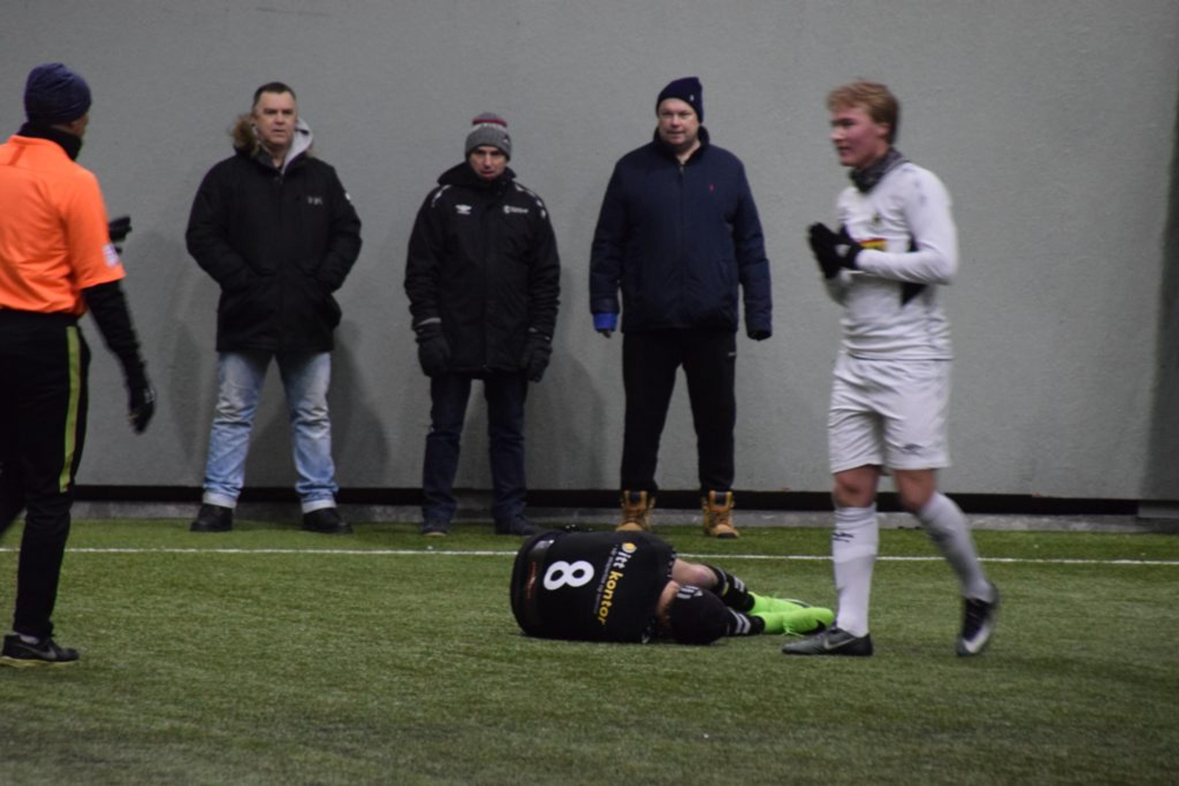 NEDE FOR TELLING: Veteranen Audun Kalleberg måtte legge seg nedpå litt etter hard medfart. Foto: Stian Ormestad.