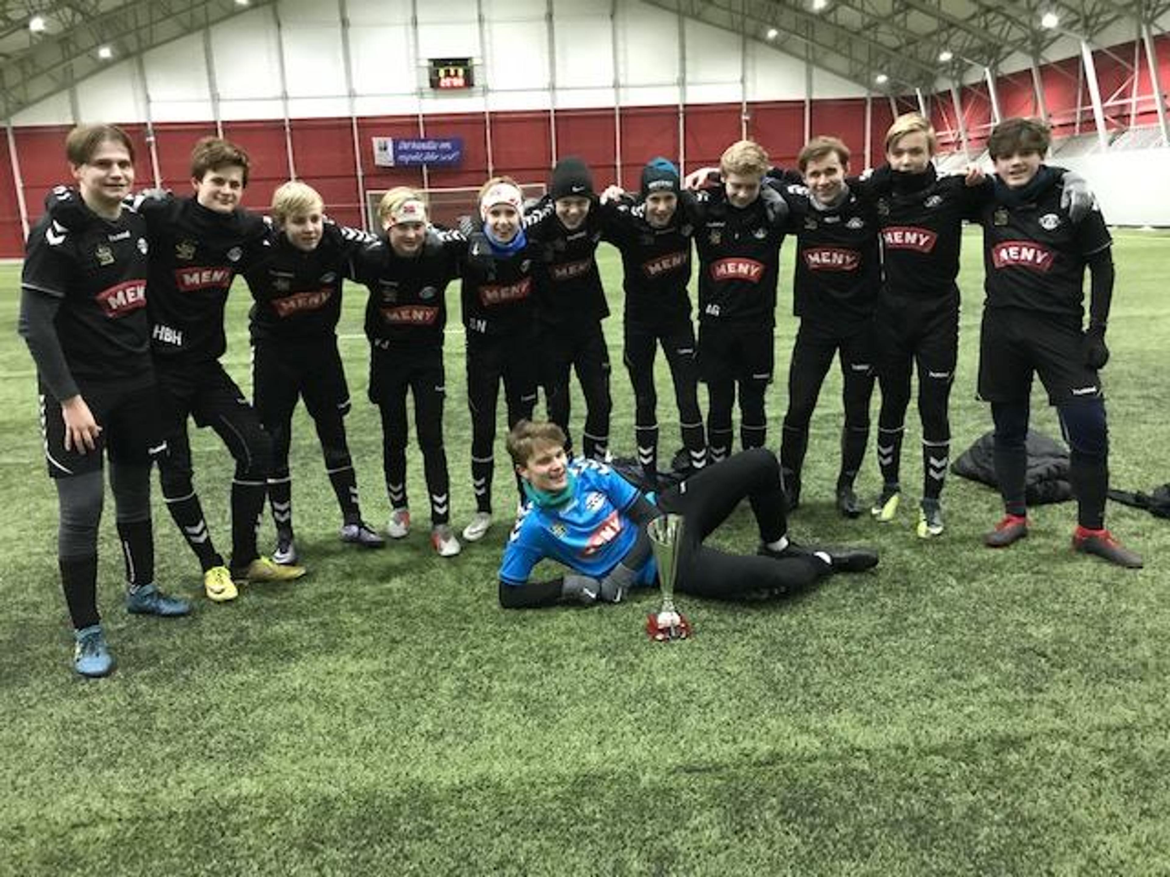 SEIER! Vinnerlaget i siste turneringshelg i årets Meny Arena Cup: Re FK J14. Foto: Privat.
