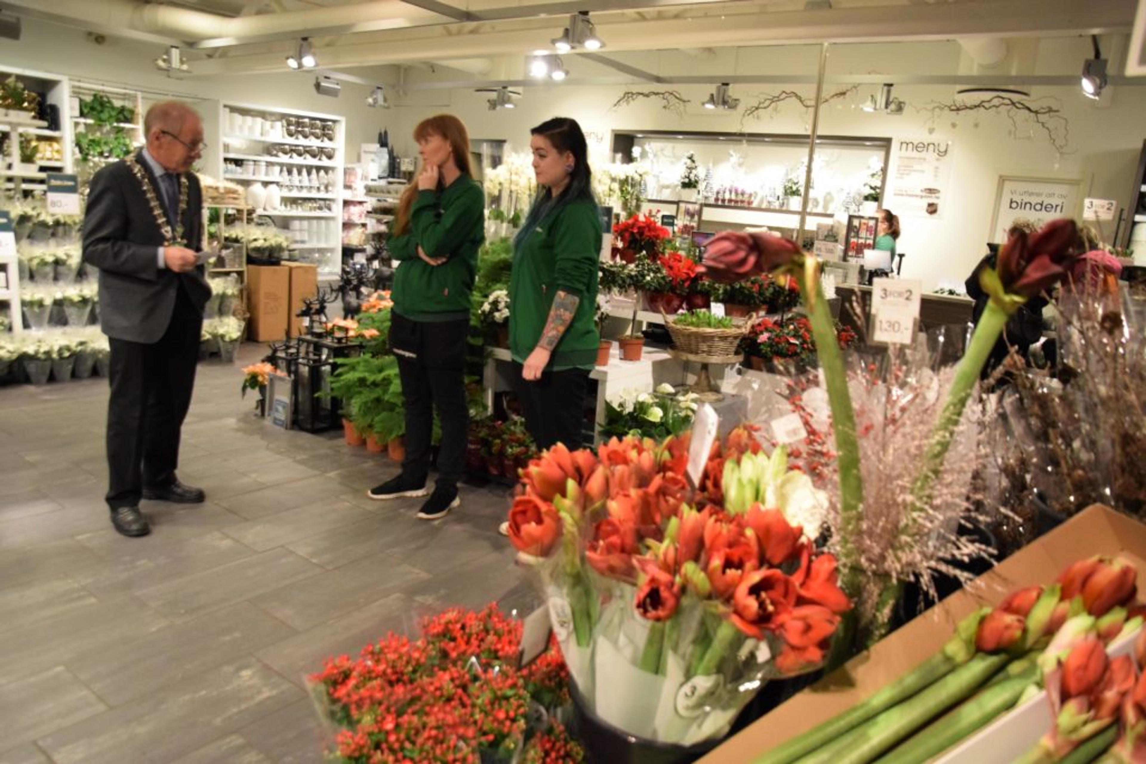 – Ja, akkurat det har vi jo nok av her fra før av, sier Kristin og Ida og ler godt sammen med ordføreren, midt i blomsterhavet på Re-torvet.