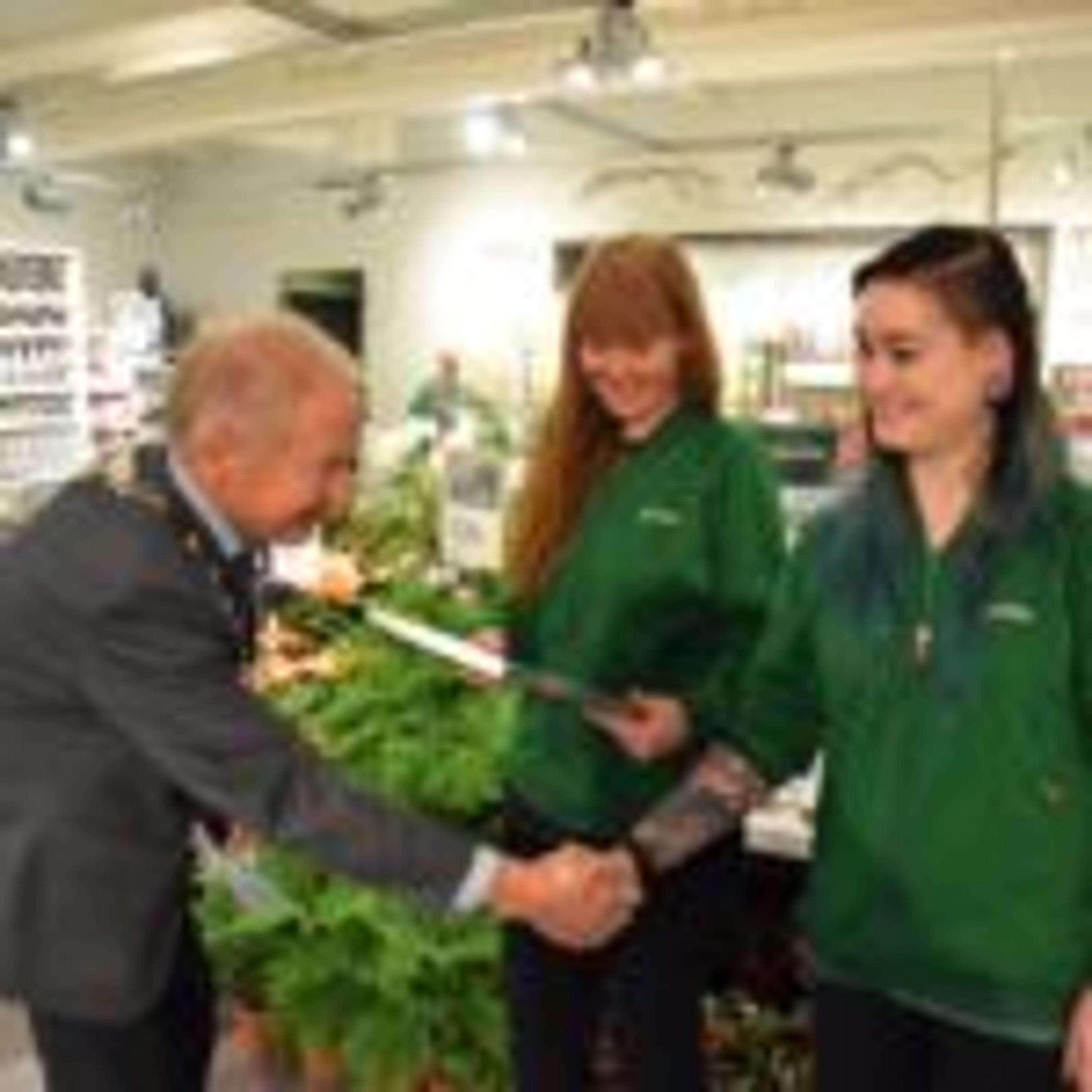 Miljøfyrtårn-beviset ble høytidelig overrakt i butikken, sammen med noen velvalgte ord fra ordføreren: