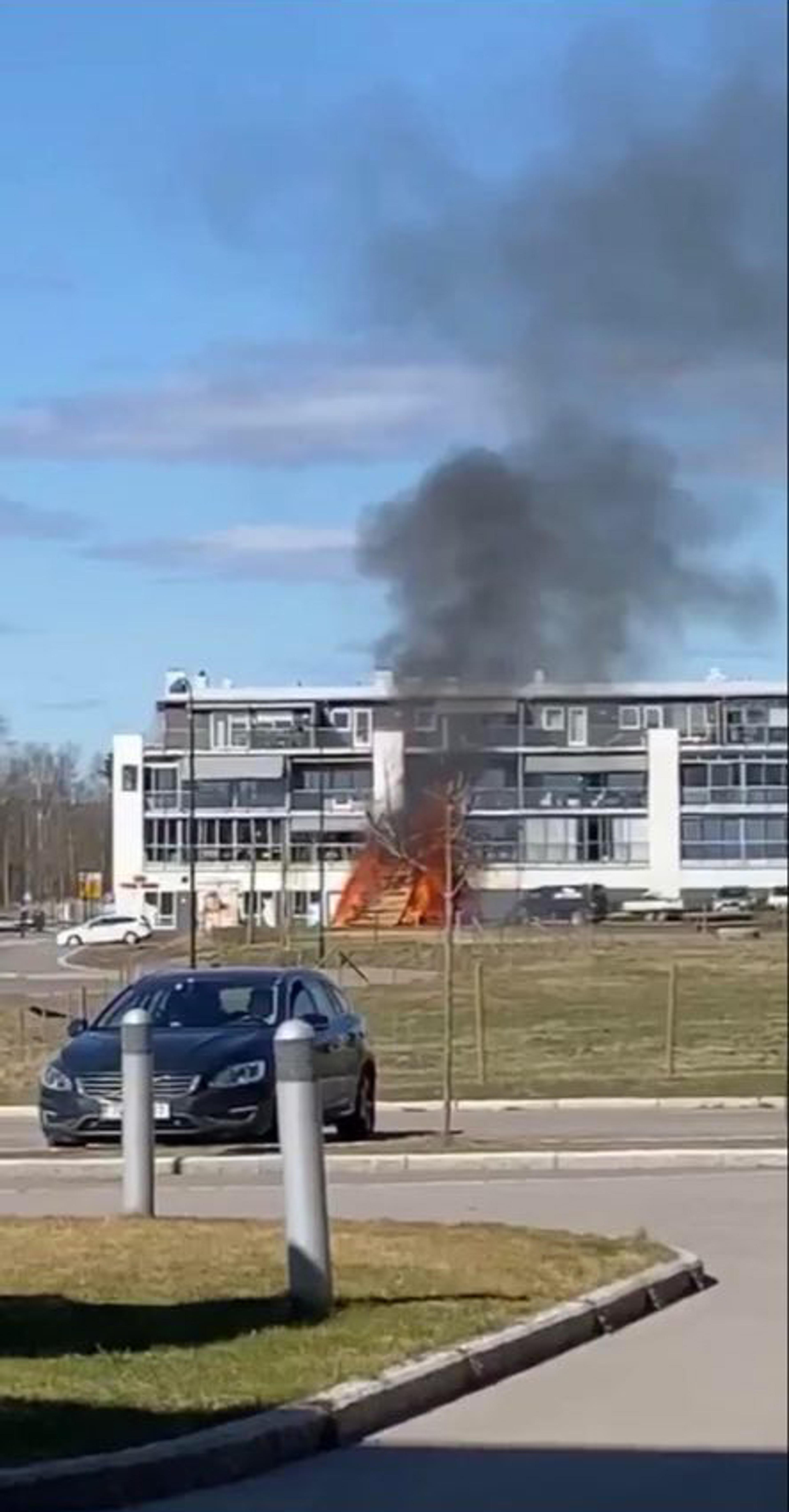 Brannmannskap er kjapt på plass og setter i gang slokking, men middelalderboden var ikke til å redde. Restene ligger igjen utbrent og totalskadd.