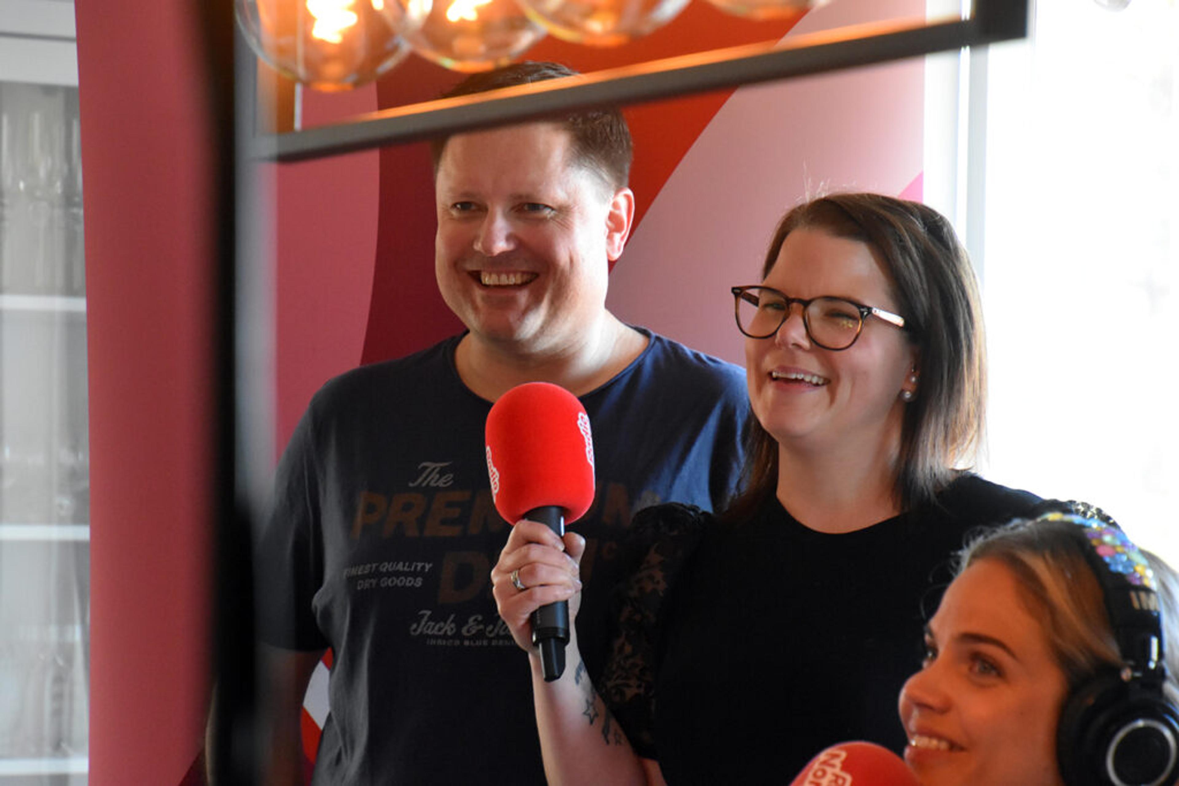 Huseby kjøkken sponser Morgenshowet, og de tok den korte turen fra rett borti gata for å dele ut gavekort på 20.000 kroner til en heldig lytter.