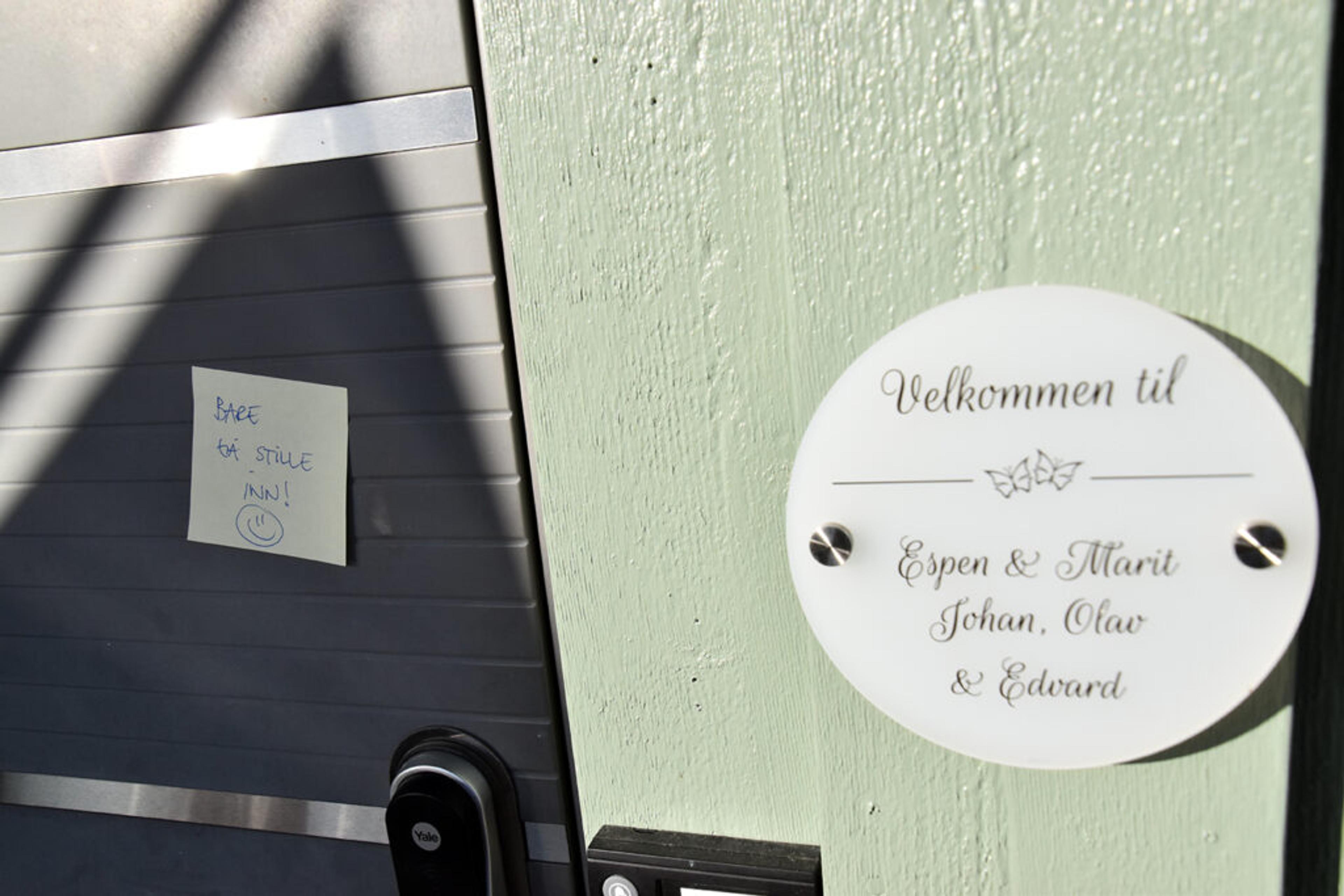 OPPTAK PÅGÅR: I et vanlig radiostudio er det ei rød lampe, her er det en gul lapp med oppfordring om å bare gå inn – men vær stille. Foto: Stian Ormestad, ReAvisa.