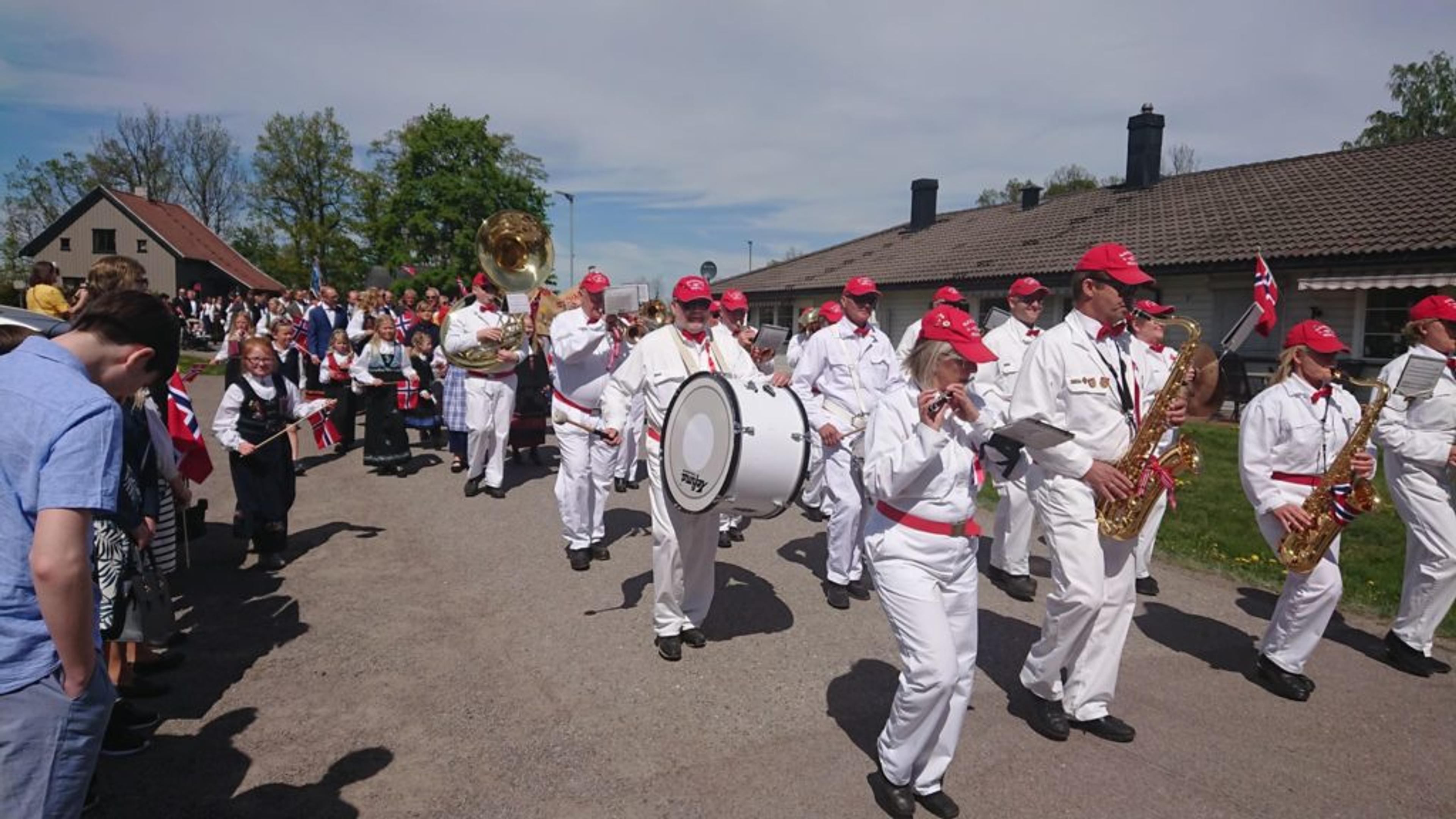 FILMMUSIKK-KONSERT: Ramnes og Røråstoppen skolekorps spiller filmmusikk, sammen med Blågjengen. Bildet er av skolekorpset en tidligere 17. mai-feiring i Bergsåsen. Foto: Stian Ormestad, ReAvisa.