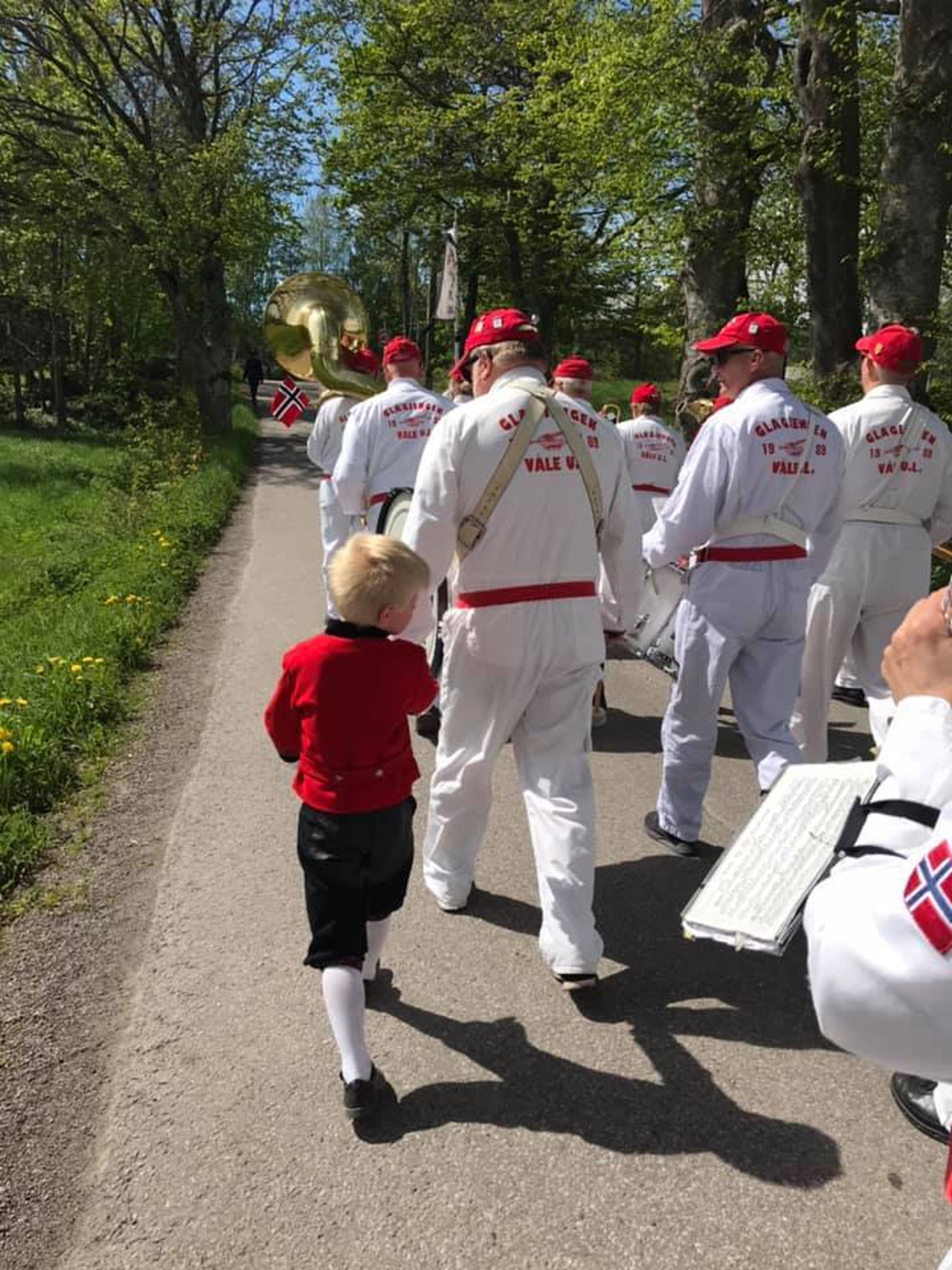 LOKAL KULTURHISTORIE: Glagjengen har marsjert taktfast på gjennom 35 år, og det skal feires til helga. Bildet er av korpset fra en tidligere 17. mai-feiring i Fon. Arkivfoto: Stian Ormestad, ReAvisa.