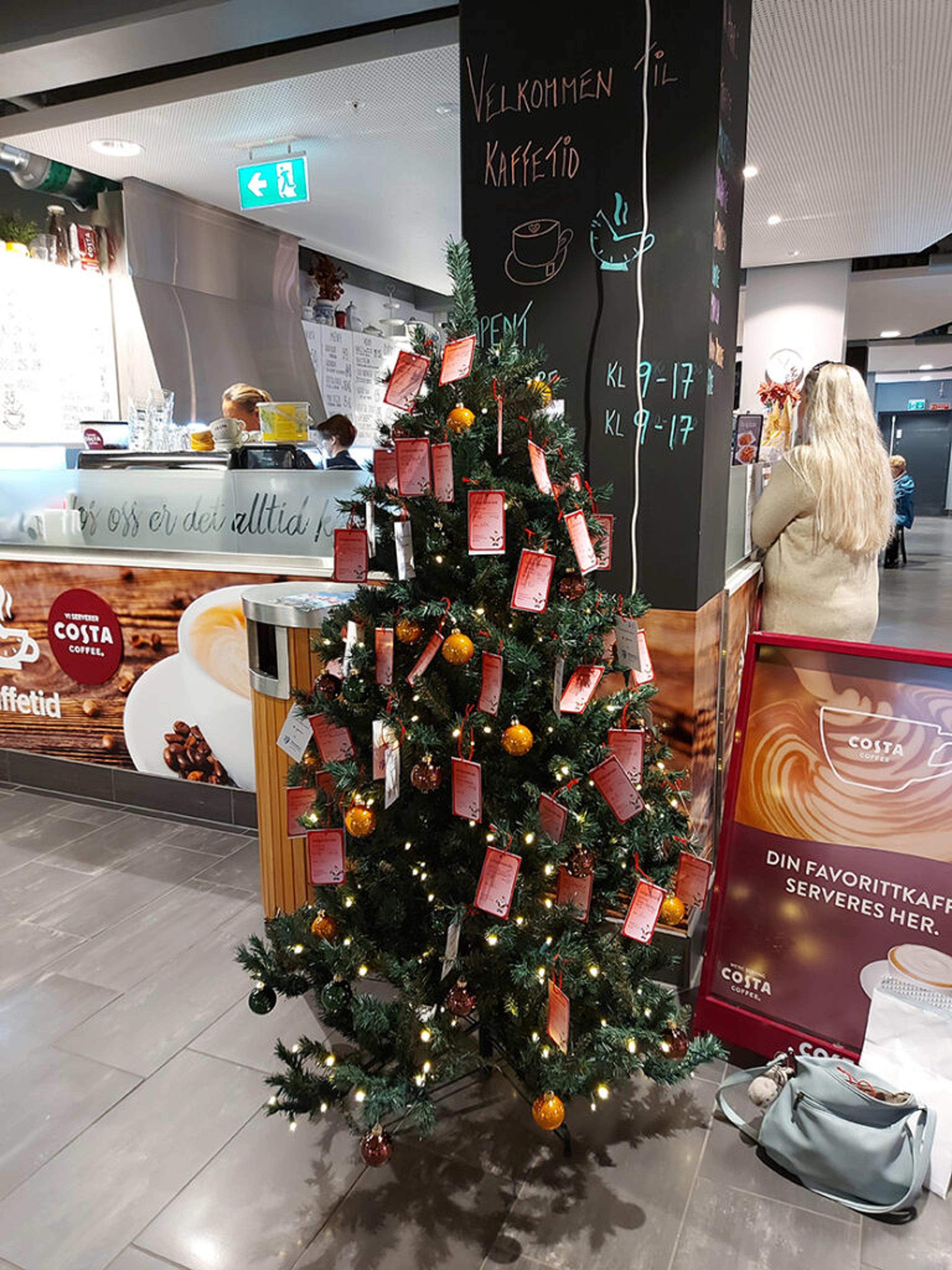 Ønskelapper er hengt opp på juletreet i 2. etasje på Re-torvet, så det er bare å ta seg turen dit og finne seg en lapp eller flere, oppfordrer Jennifer via ReAvisa.