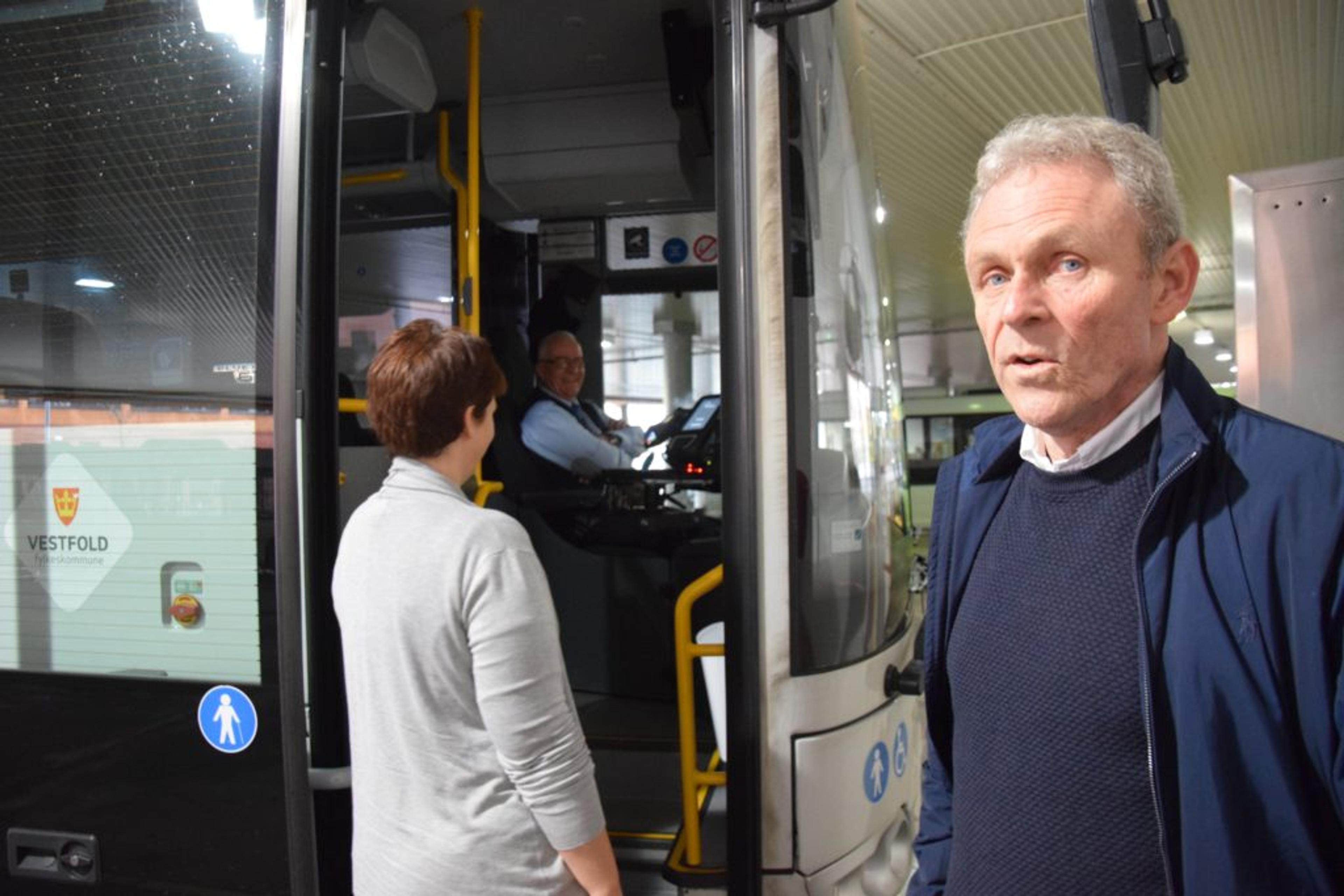 NÆRMERE NORMALEN – OGSÅ PÅ LOKALBUSSENE: Trond Myhre, leder for Kollektiv og mobilitet i Vestfold og Telemark fylkeskommune, melder at fordøra på bussen er fritt fram å bruke igjen, fra og med førstkommende mandag. Arkivfoto: Stian Ormestad.
