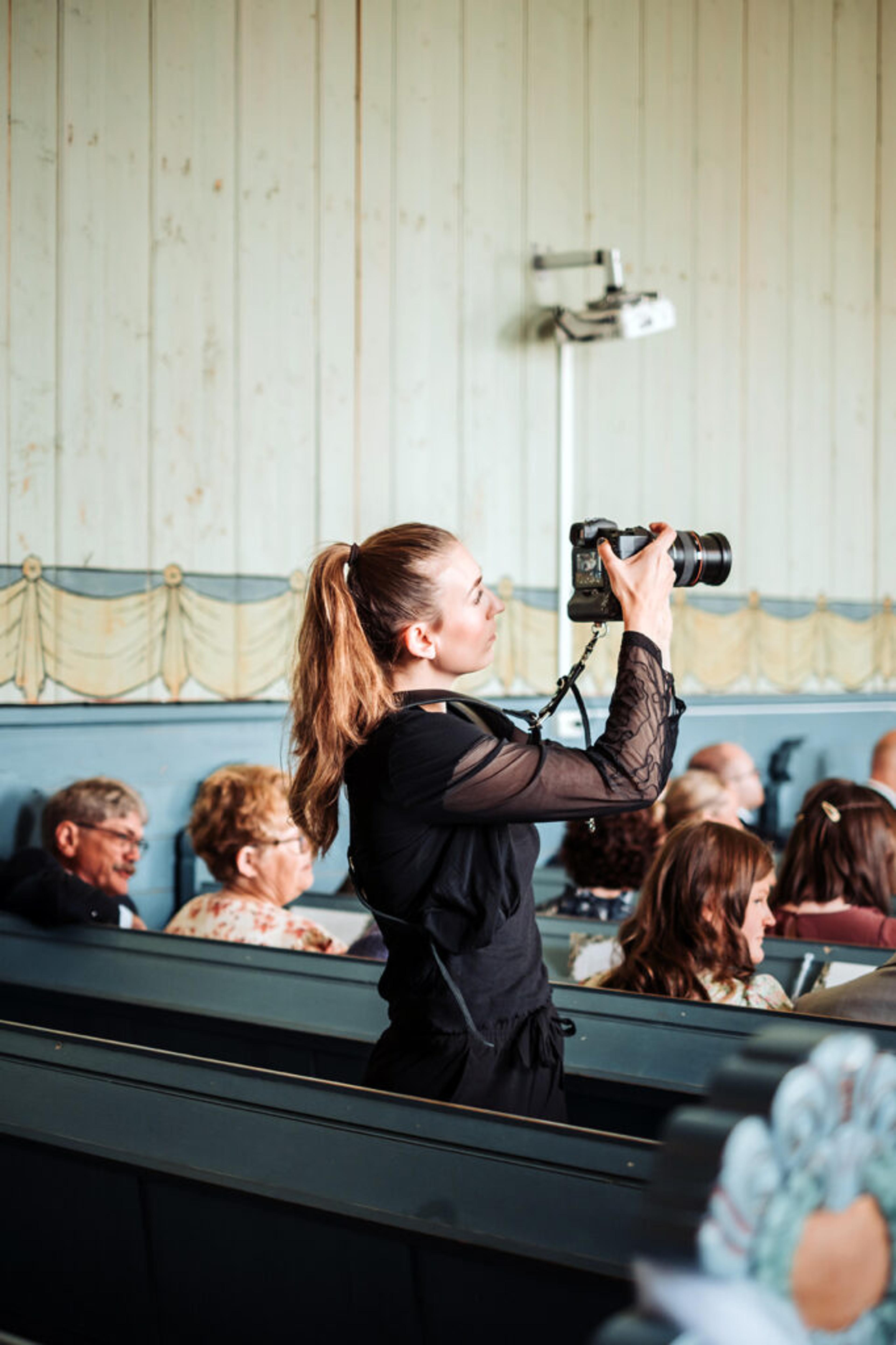 NY FOTOGRAF I BYGDA: Maria Lynne, her i full sving i kirka, etablerer seg med eget fotostudio på Revetal med åpning i mars-måned. Foto: Privat.
