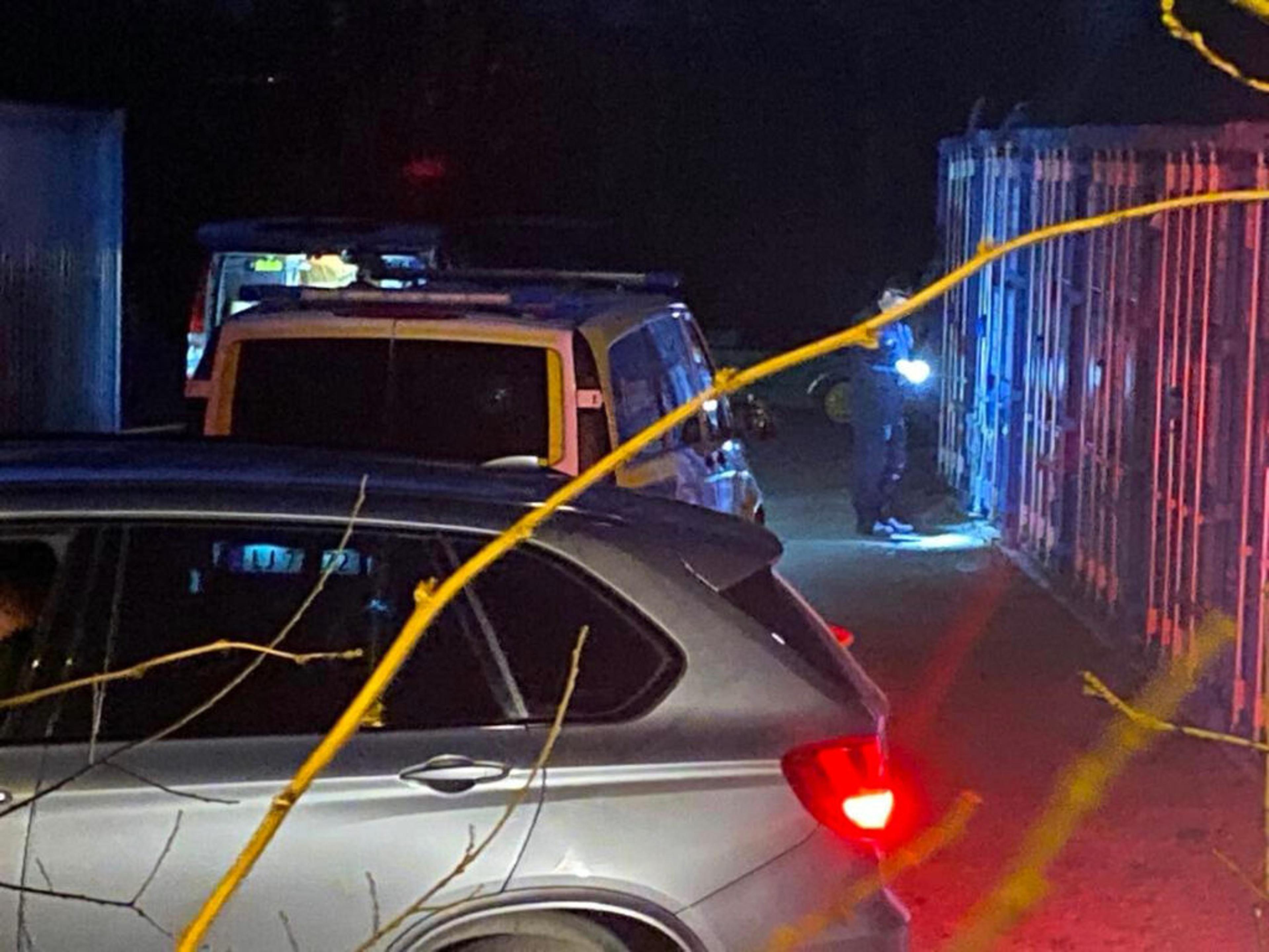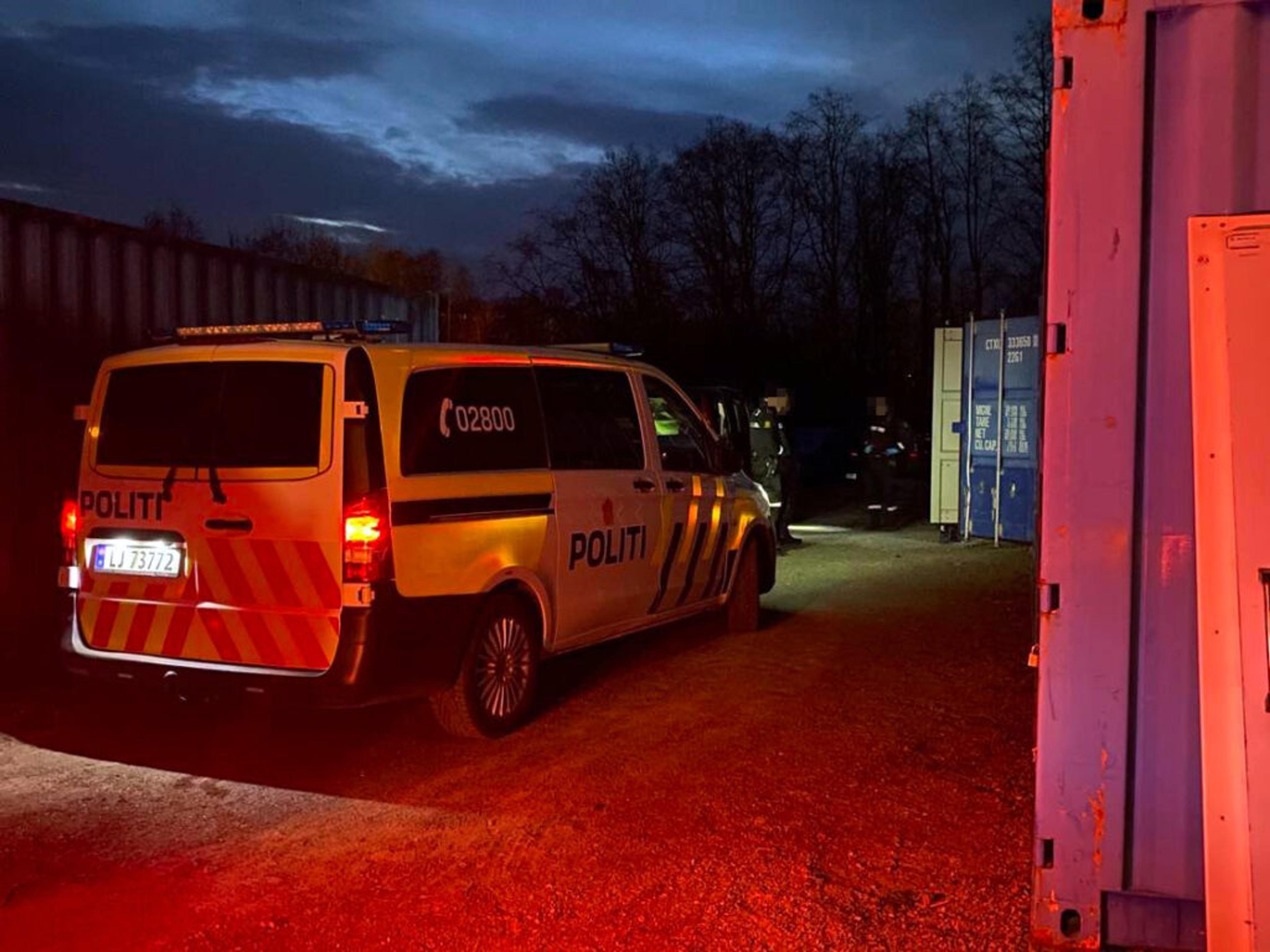 I MØRKET: Én uniformert politibil var blant alle de sivile, og den uniformerte politibilen var godt gjemt bak bygningsmassen og innimellom konteinere helt til siste innspurt av aksjonen. Foto: Stian Ormestad, ReAvisa.