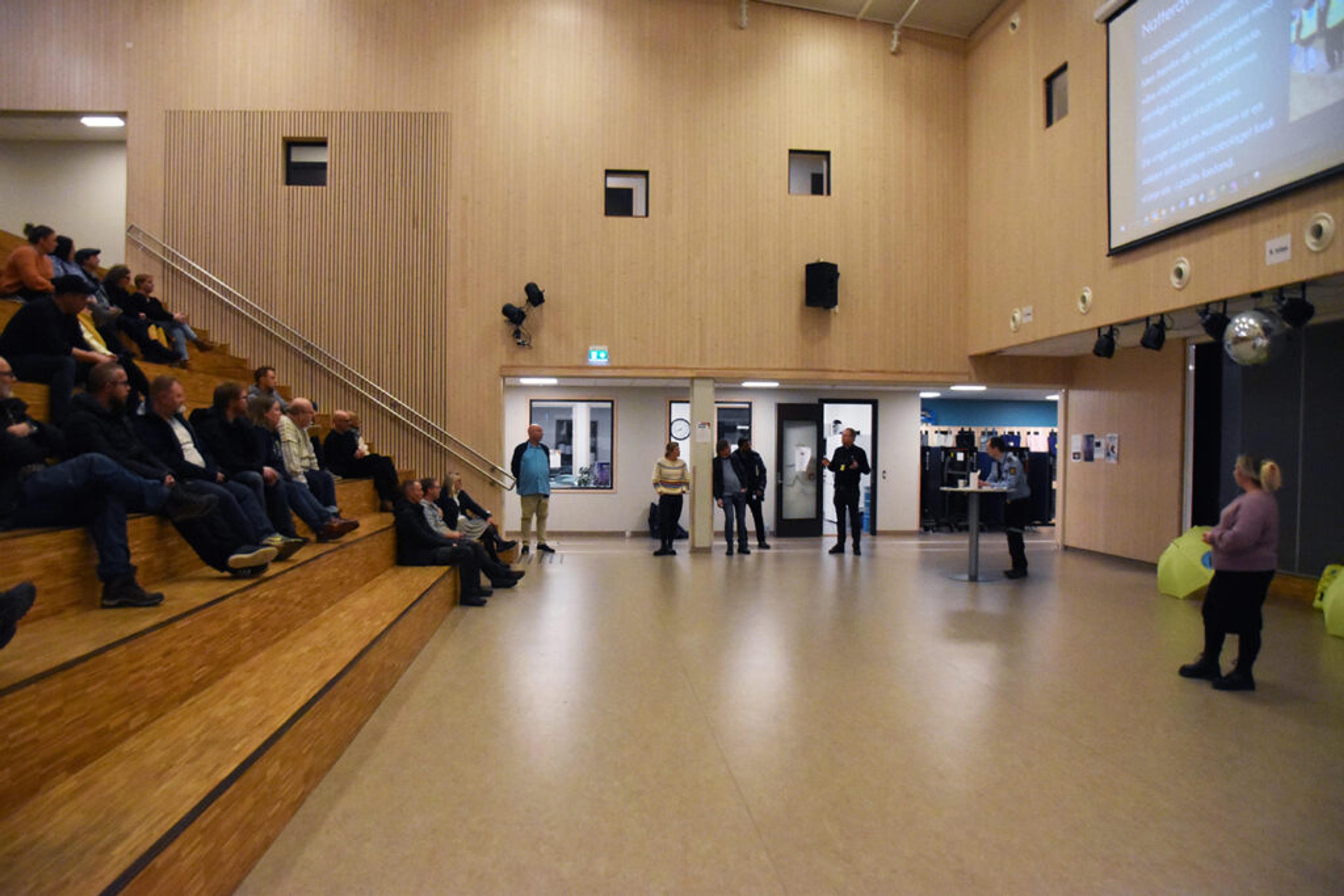 OPPSTARTMØTE: Natteravnene ønskes velkommen av skole, ungdomskontakt, utekontakt, sosiallærer, politi og ikke minst initiativtakerne i FAU ved Revetal ungdomsskole. Flere meldte seg frivillig på oppstartmøtet onsdag 1. februar 2023. Foto: Stian Ormestad, ReAvisa.