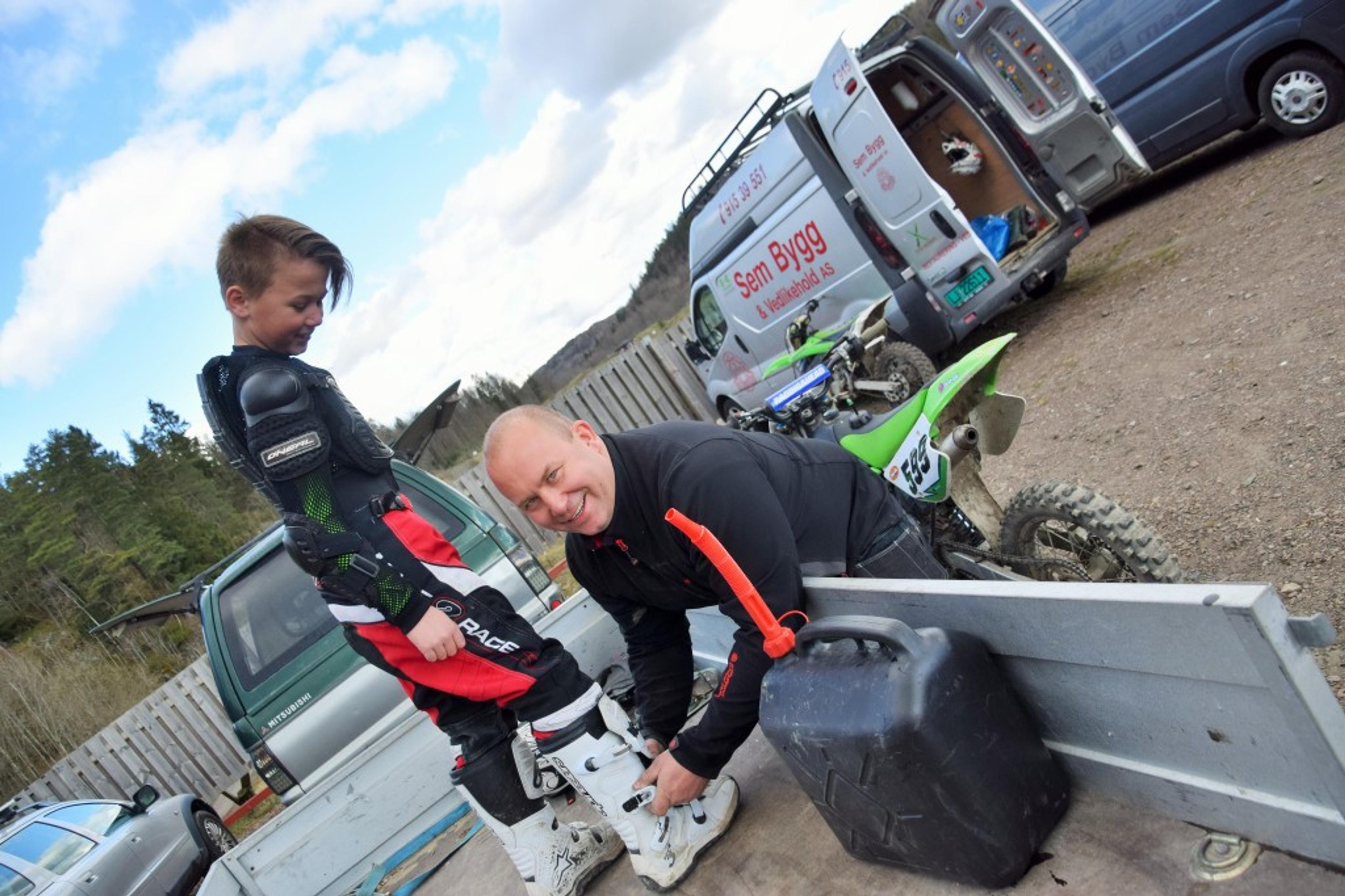 DET GROR GODT I RE MOTORSPORT: Far og sønn Holtung gjør seg klar for en trening på Ødegården for noen år siden. Etter det er det blitt mange runder på hjemmebanen. Dessverre hindrer et kragebeinsbrudd NM-deltakelse for junior-Holtung. Foto: Stian Ormestad.