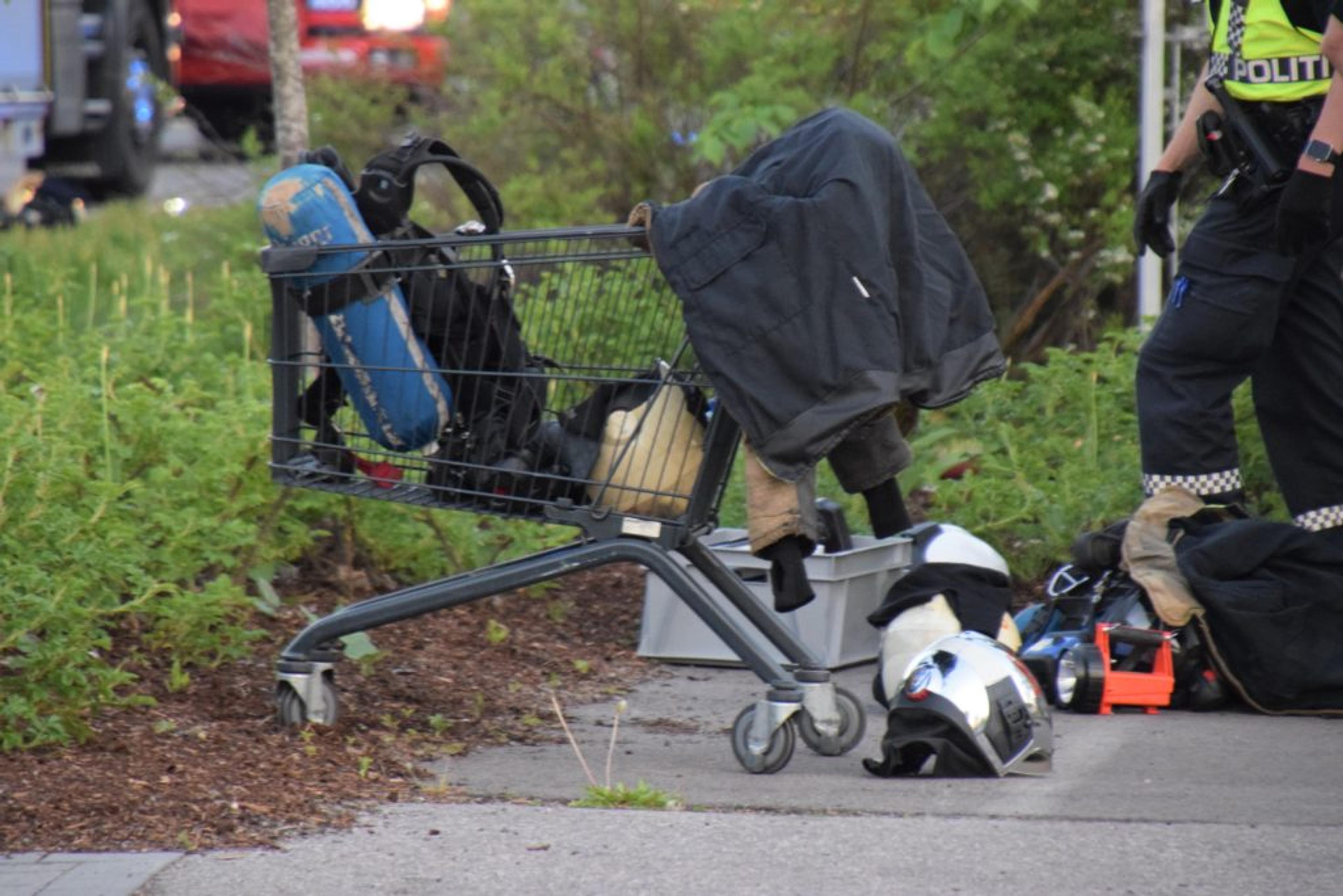 KJEKT MED EI HANDLEVOGN: Ei forlatt handlevogn på parkeringsplassen duger til oppbevaring for nødetatene. Foto: Stian Ormestad.