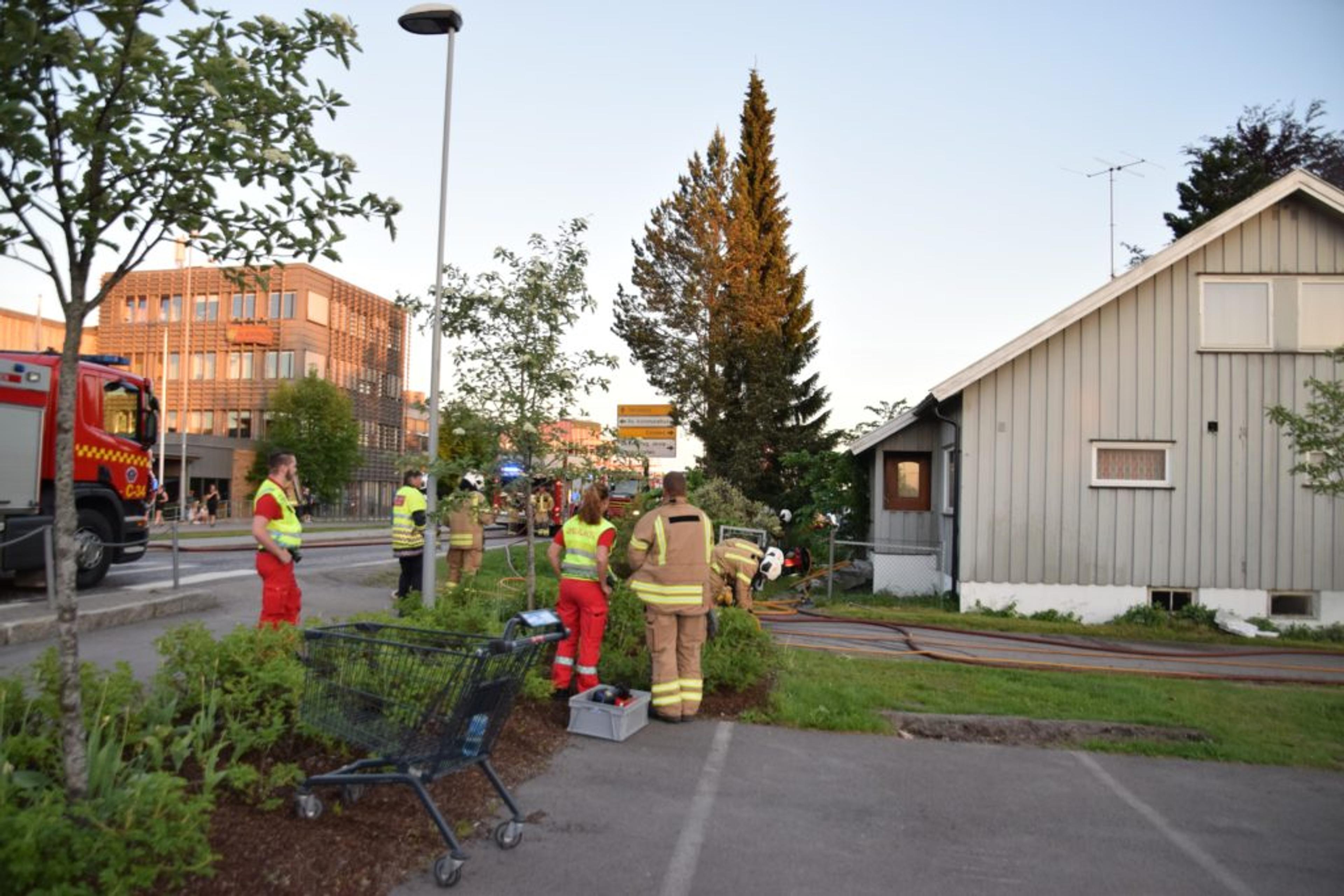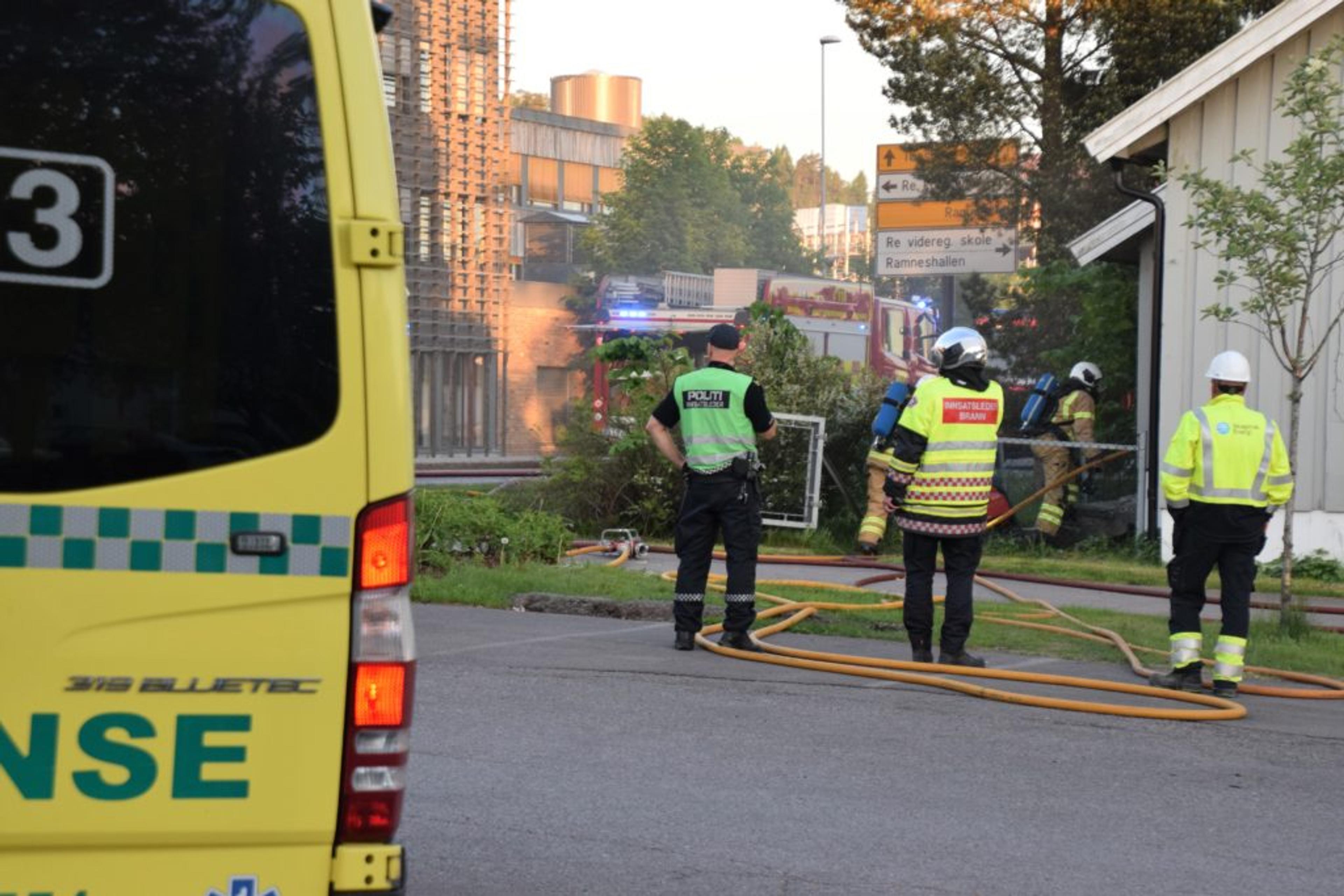 ALLE NØDETATER ER PÅ STEDET: En forbipasserende skal ha oppdaget brannen. Foto: Stian Ormestad.