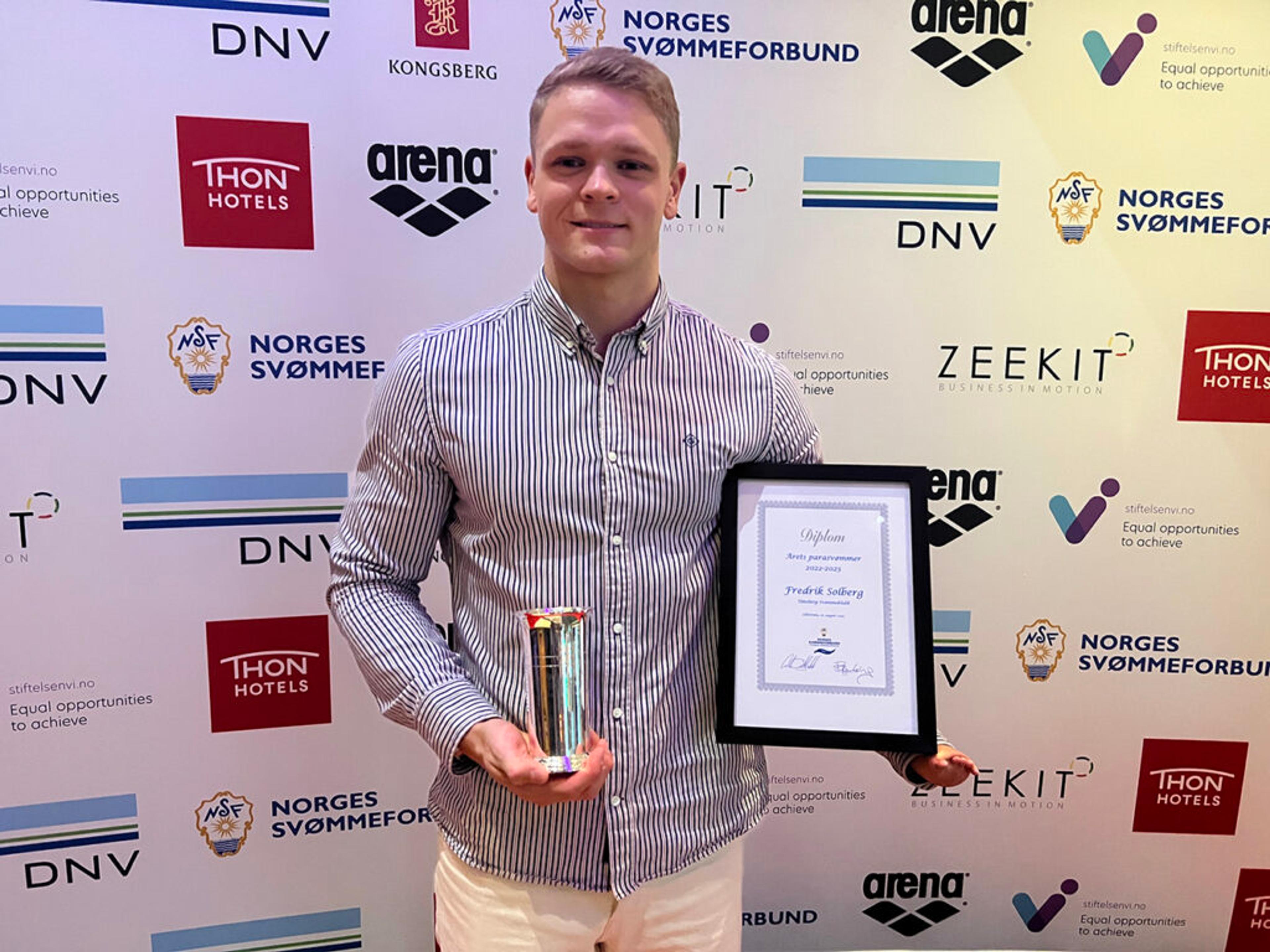 ÅRETS PARASVØMMER: Fredrik Solberg med heder og ære – for tredje gang og fjerde året. Foto: Norges Svømmeforbund.