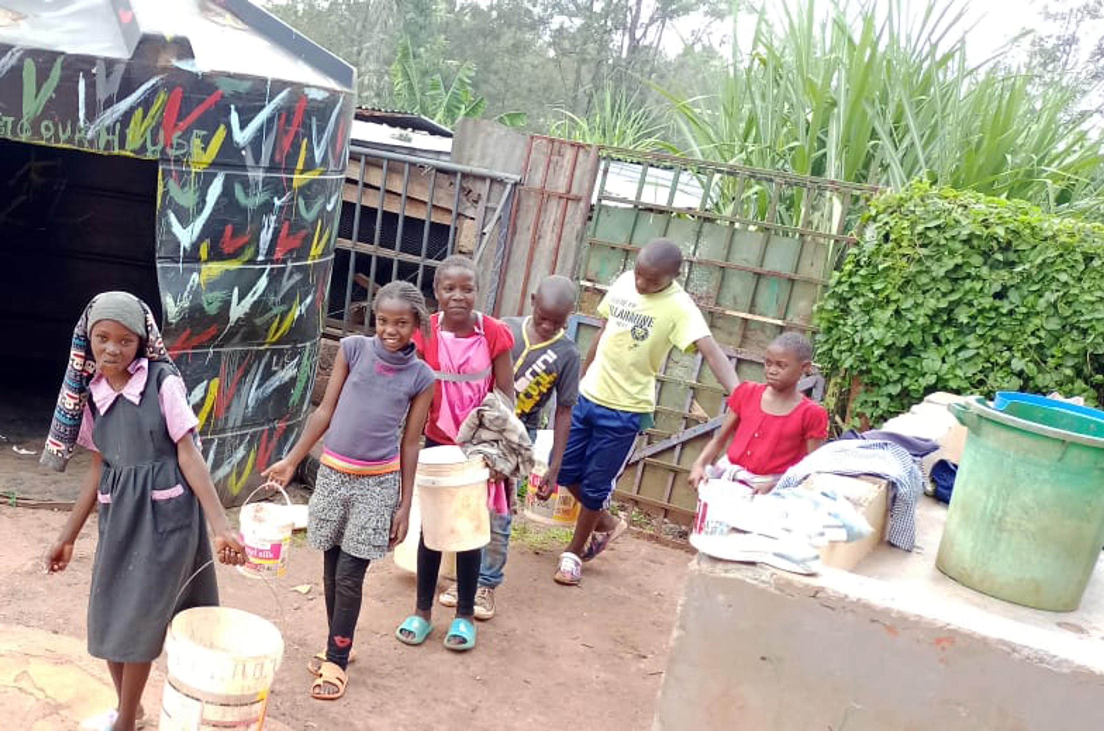 HENTER VANN: Dette bildet er fra da noen av barna på barnehjemmet henta vann sist lørdag, da må de ty til tvilsomt vann fra elver og andre nødløsninger som ikke er bra i det hele tatt. Foto: Privat.