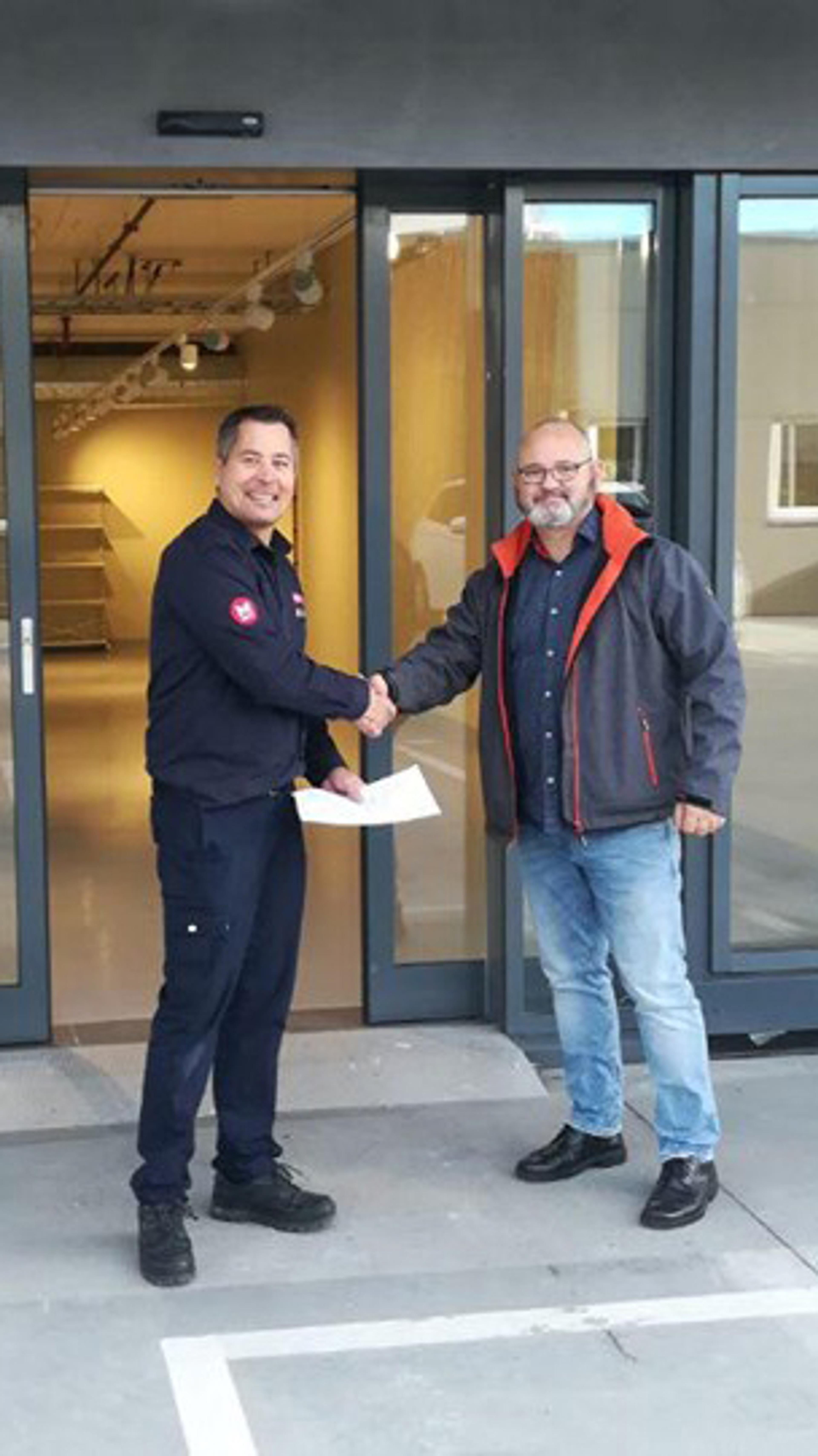 DEAL! Martin Gran ønsker velkommen på vegne av Re-torvet. Geir Widerøe og Norwegian modellers AS velger å satse på Re. Foto: Privat.