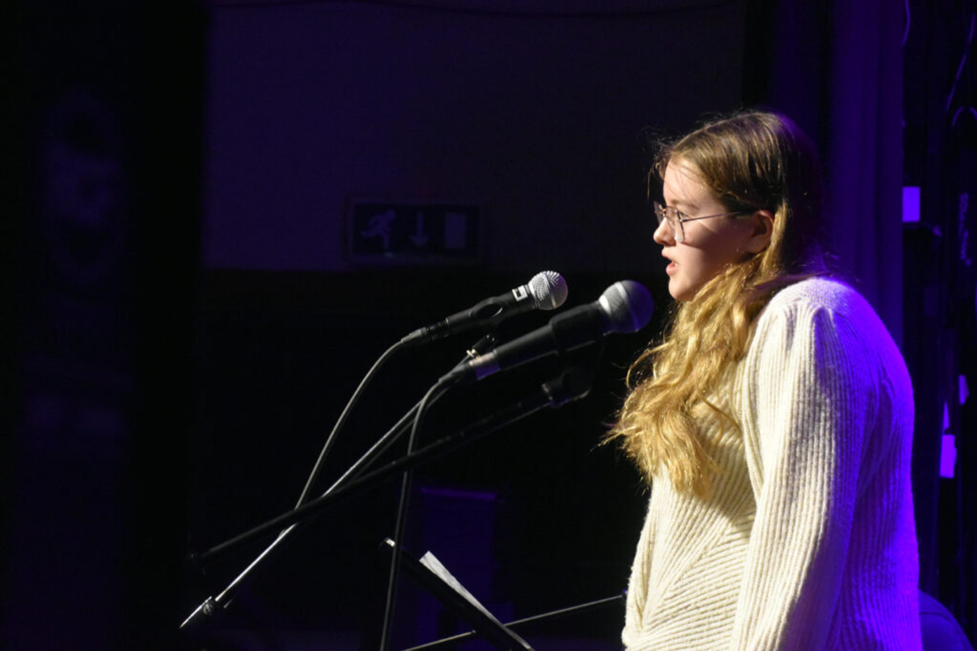 VAKKER SANG: Det samme gjelder Charlotte Sofie Eliassen Holtung. Etter hver sin sang, synger de to gode venninnene vakkert sammen. Foto: Stian Ormestad, ReAvisa.
