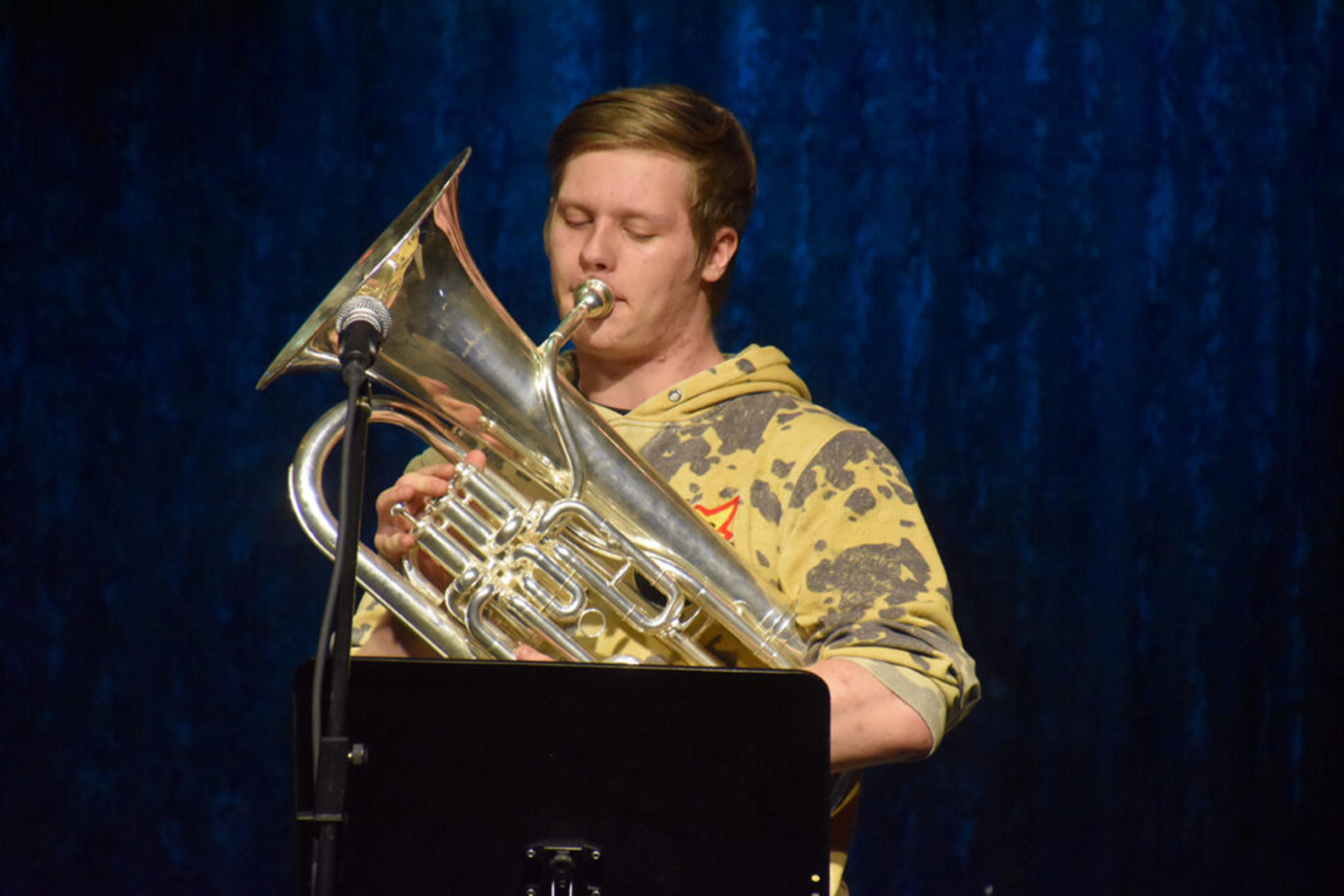 KONFERANSIER: Hva hadde vel kulturhuset vært uten Sindre Gade Johnsen, som er høyt og lavt på huset – og konferansier under Nyttårskonserten. Foto: Stian Ormestad, ReAvisa.