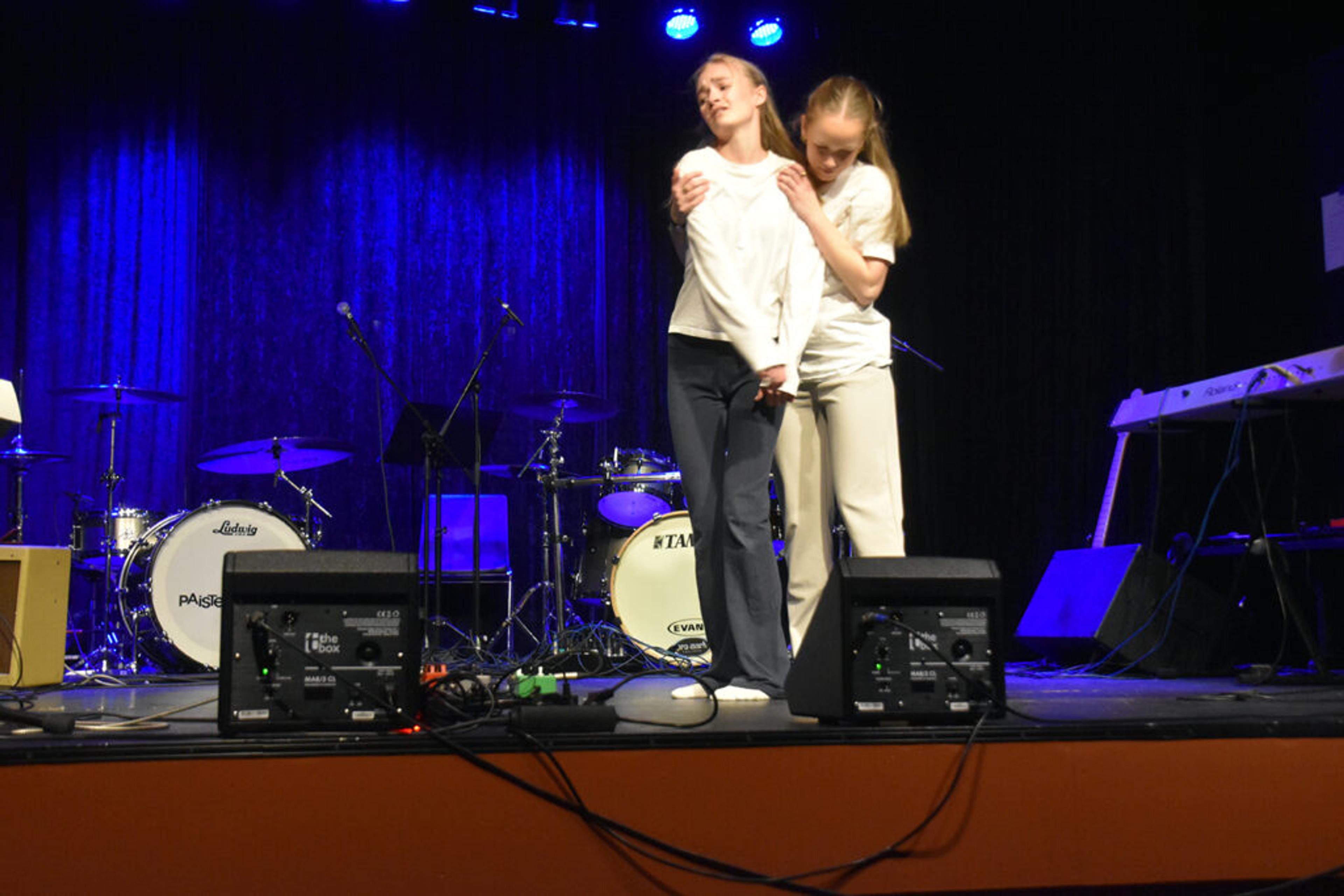 – Vi har øvd masse sammen på skolen, forteller jentene. Backstage er det hektisk aktivitet, stor spenning, – og mye moro, forteller 10-åringene til lokalavisa.