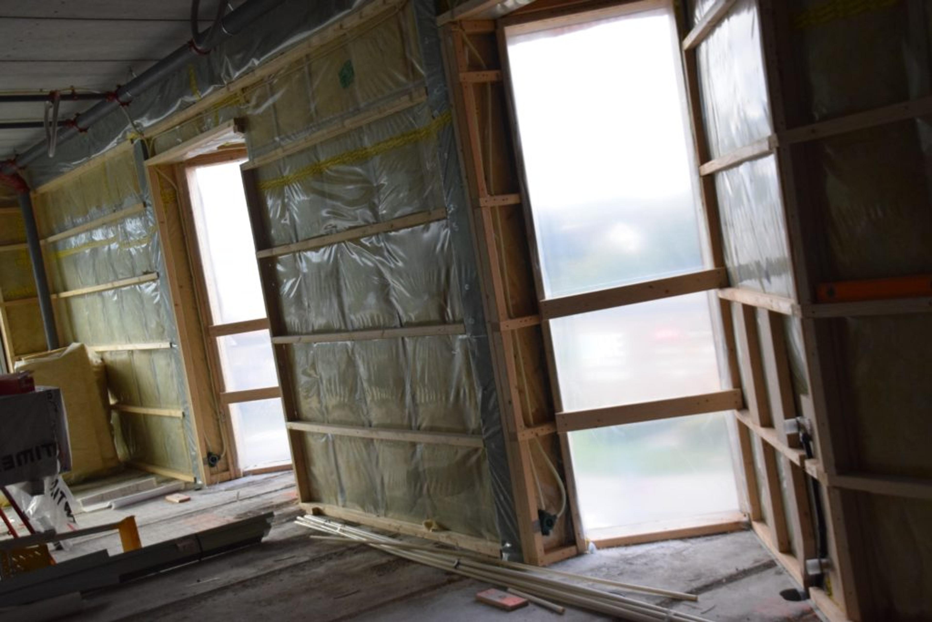 LYST OG TRIVELIG: Disse «utstikkene» sørger for lys og kanskje blir det også en koselig liten arbeidskrok? Øst-delen av bygget har store vindusflater fra bånn til topp. Veggen mot vest er også glass. Resten av bygget slipper inn lys på flere kreative vis. Foto: Stian Ormestad.