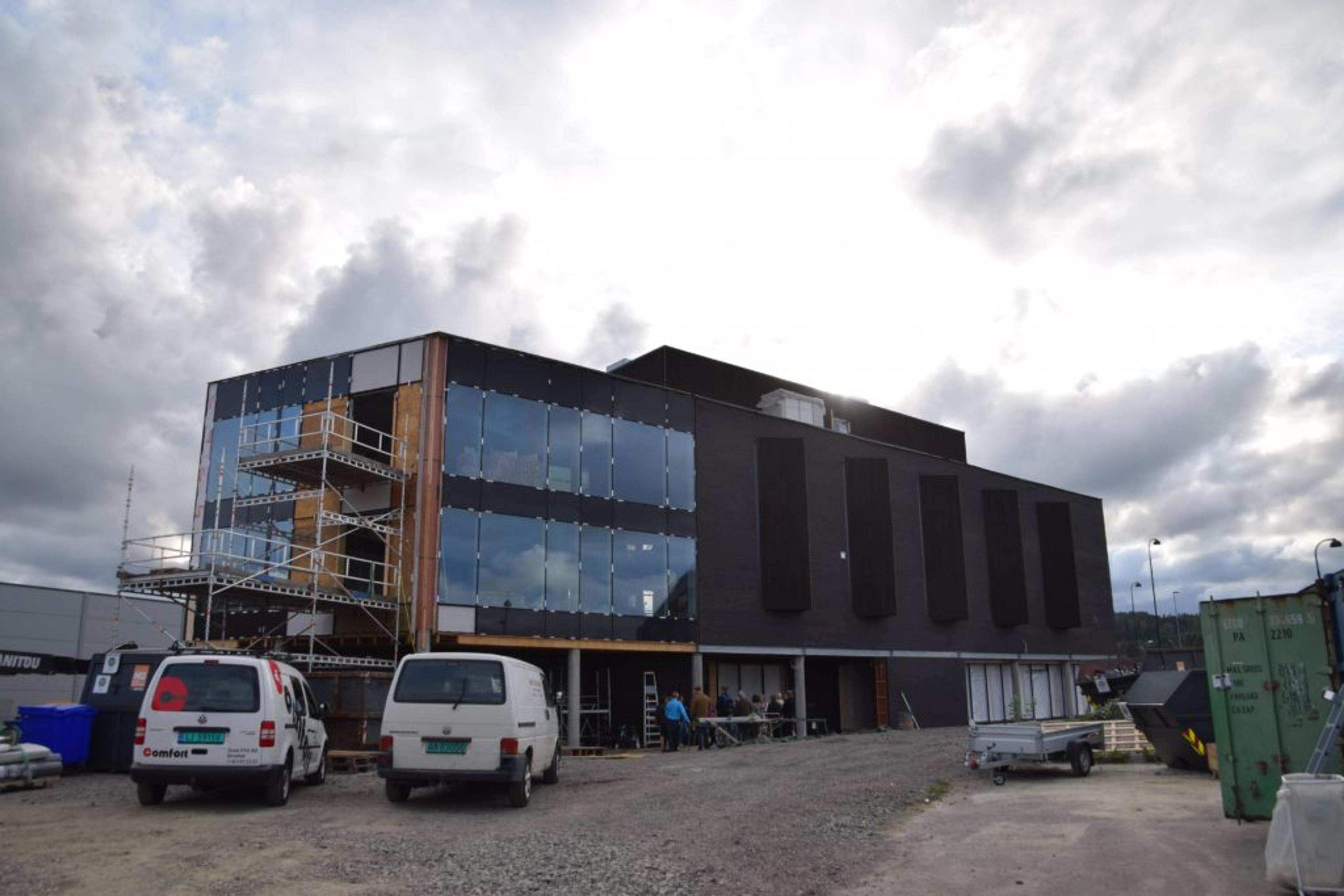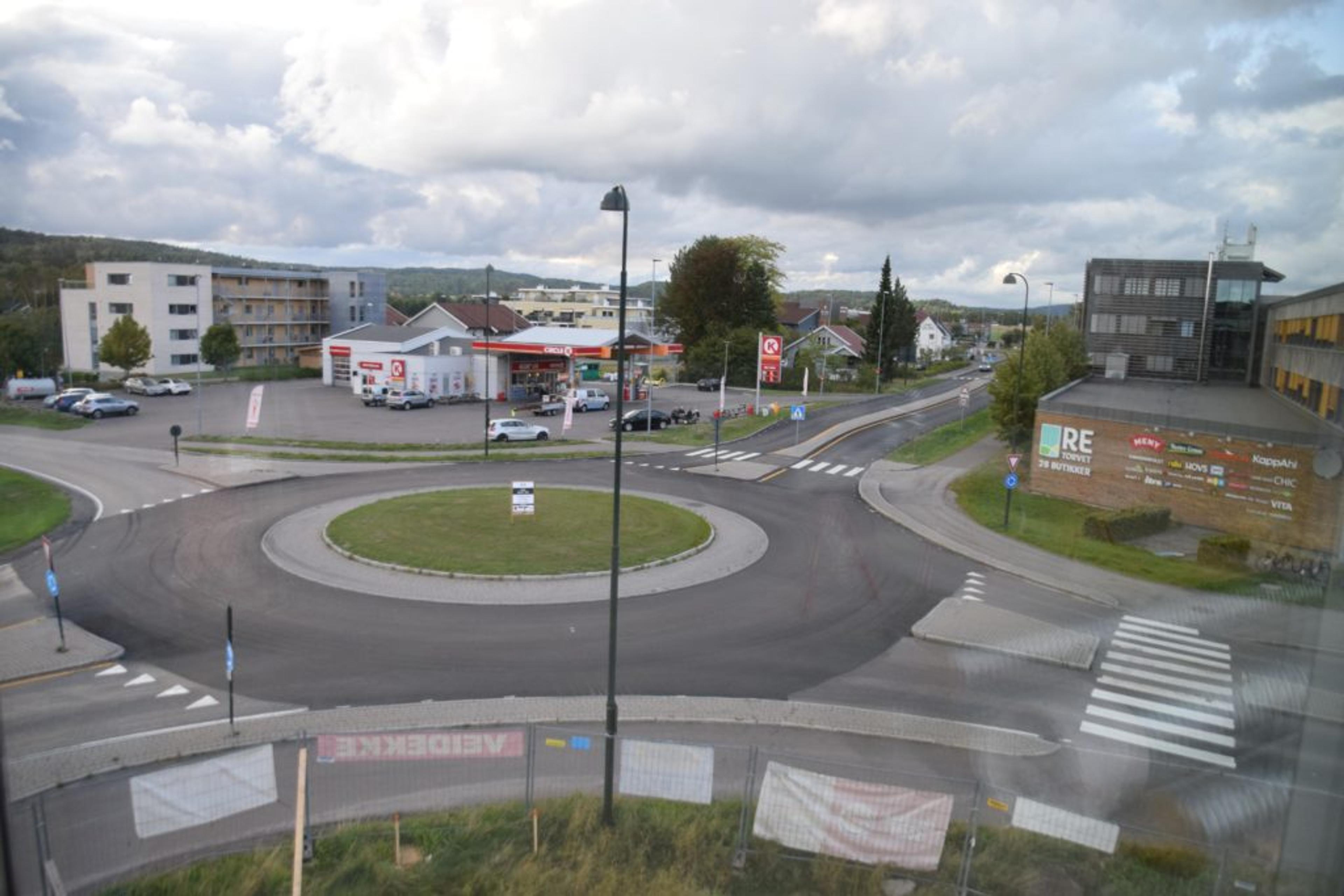 FASADEN: Sett fra rundkjøringen ved bensinstasjonen. Foto: Stian Ormestad.