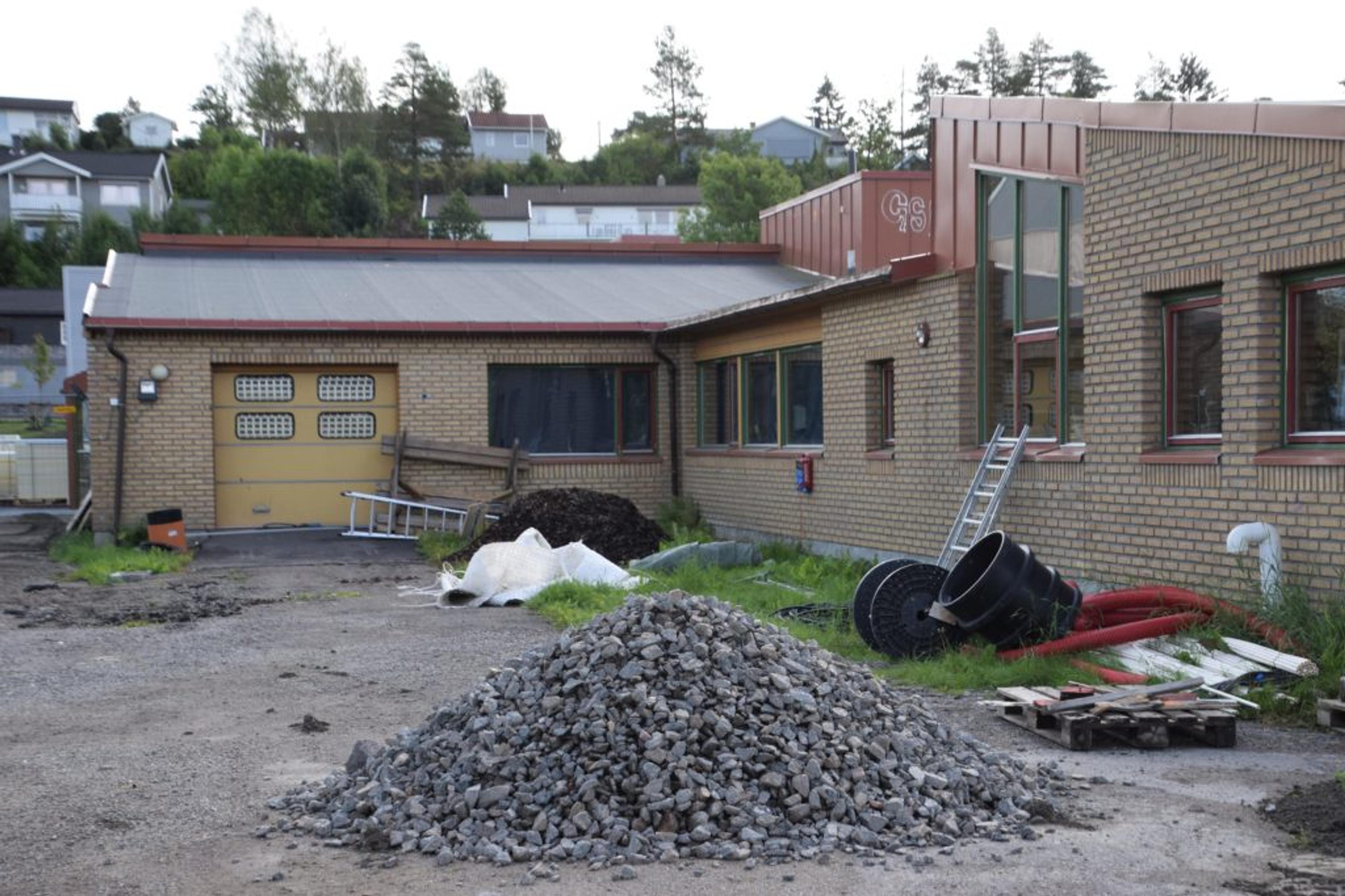 TOPPLØS: Dette er siste rest av den gamle skolebygningen fra 1968. Foto: Stian Ormestad.